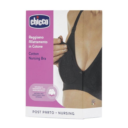 Sujetador de lactancia realizado con tejido de algodón elástico muy flexible y resistente, que brinda comodidad, ya que se ajusta a la perfección al cuerpo. Tiene unos aros en las copas que refuerzan y se pueden abrir, facilitando el amamantado. Favorece el desarrollo de los senos sin comprimirlos, que se adaptan de forma confortable. Posee unas bandas altas, para regular el tamaño. Color negro, talla 6C.