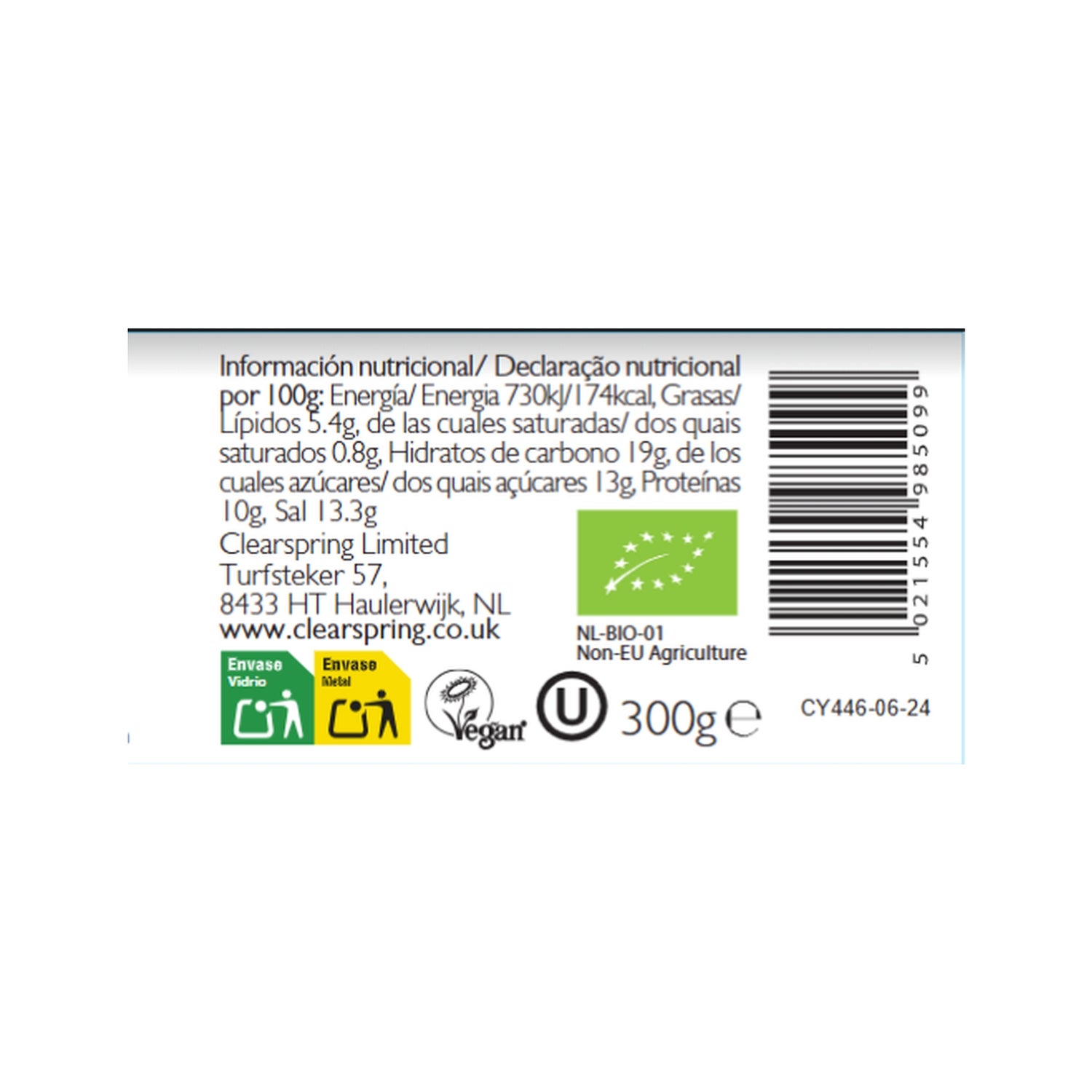 Condimento alimentario de origen japonés, elaborado a base de soja fermentada y arroz integral sin pasteurizar. Aporta sabor y color a las preparaciones mientras le proporciona un extra de minerales y vitaminas a los alimentos. Además, sus ingredientes tienen propiedades antioxidantes y digestivas. Adecuado para añadir a sopas y cremas.