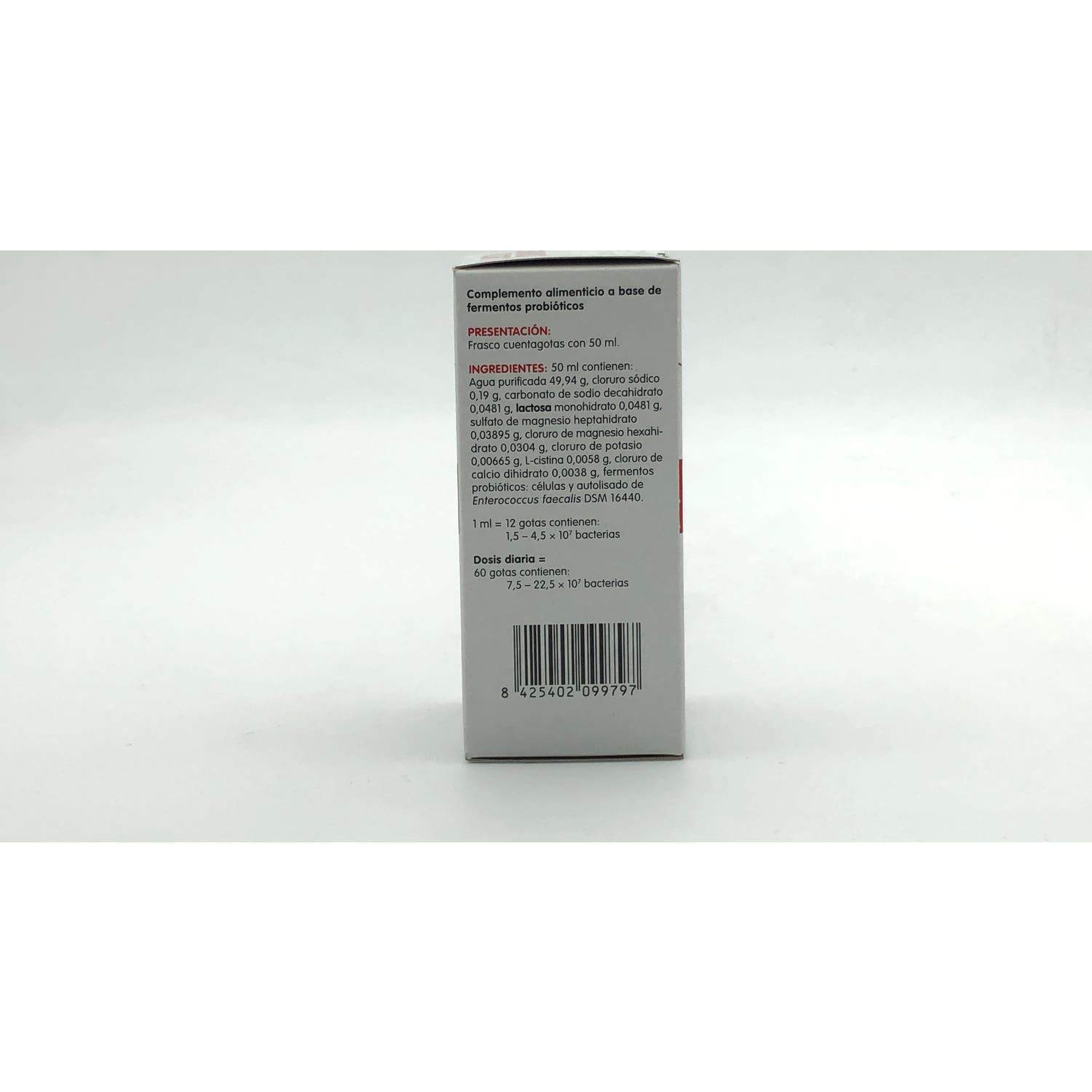 Agua destilada, cloruro sódico, carbonato de sodio decahidratado, lactosa, sulfato de magnesio, cloruro de magnesio, cloruro de potasio, L-cistina, cloruro de calcio, fermentos probióticos: células y autolisado de Enterococcus faecalis (DSM 16440).