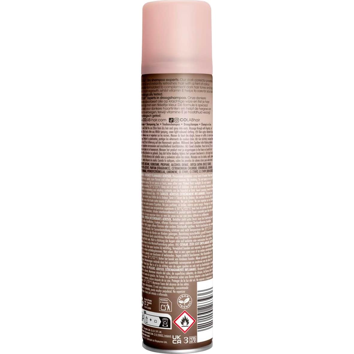 Colab Dark Corrector Vitamin E Champú Seco 200 ml es una solución ideal para prolongar el tiempo entre lavados, aportando volumen y movimiento al cabello. Este champú en seco de la colección COLAB+ Correctora de Color está diseñado para absorber eficazmente el exceso de grasa, brindando una sensación de frescura instantánea.