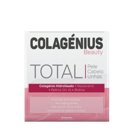 Colagénius Beauty Total 30 Saquetas es un complemento alimenticio diseñado para cuidar la belleza de tu piel. Este producto incorpora Vitamina C, que ayuda a mejorar la elasticidad, firmeza y suavidad de la dermis.