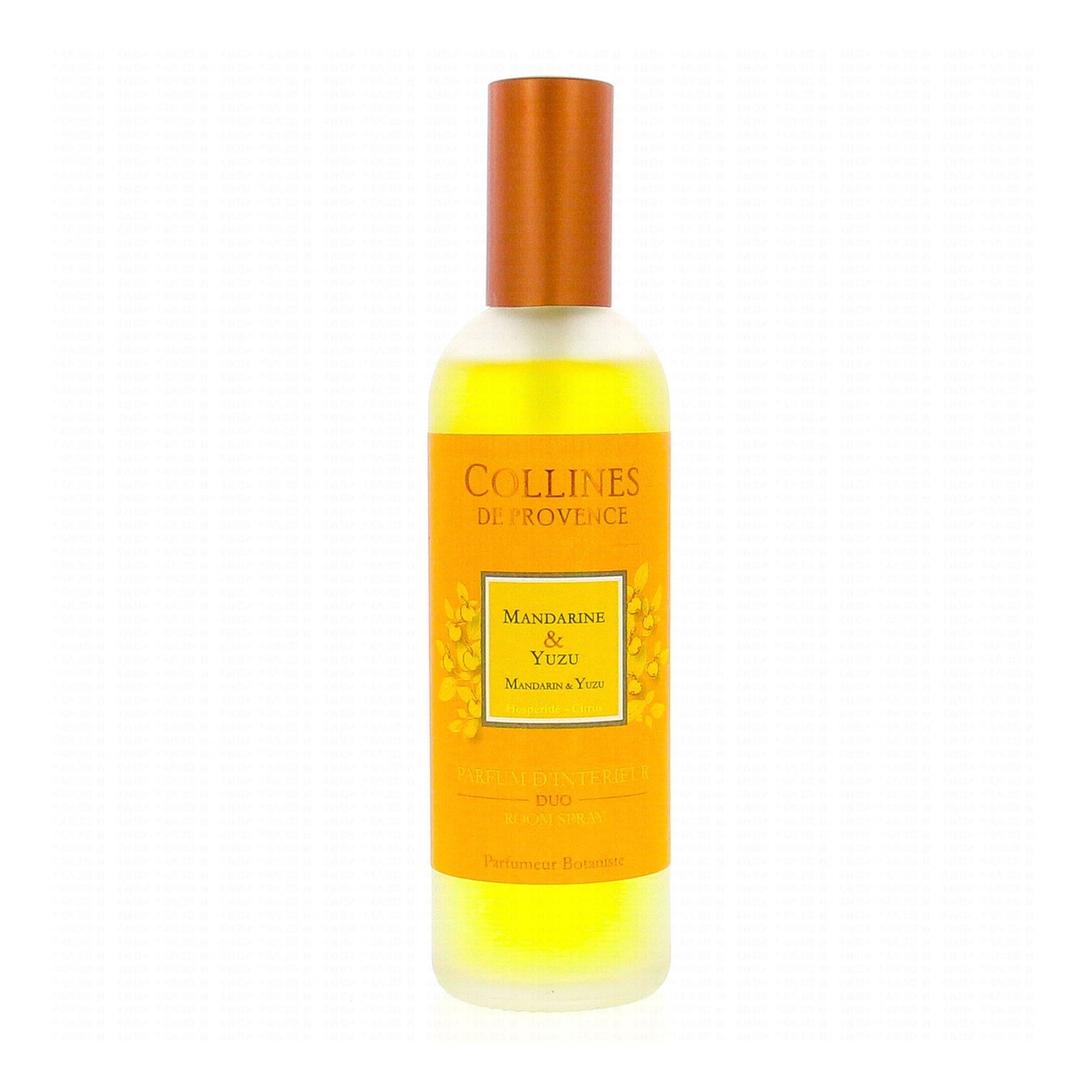 Ambientador para el hogar en formato spray, que contiene una fragancia dulce, floral y cítrica de mandarina y yuzu, ideal para perfumar cualquier estancia del hogar, especialmente el salón o habitaciones.