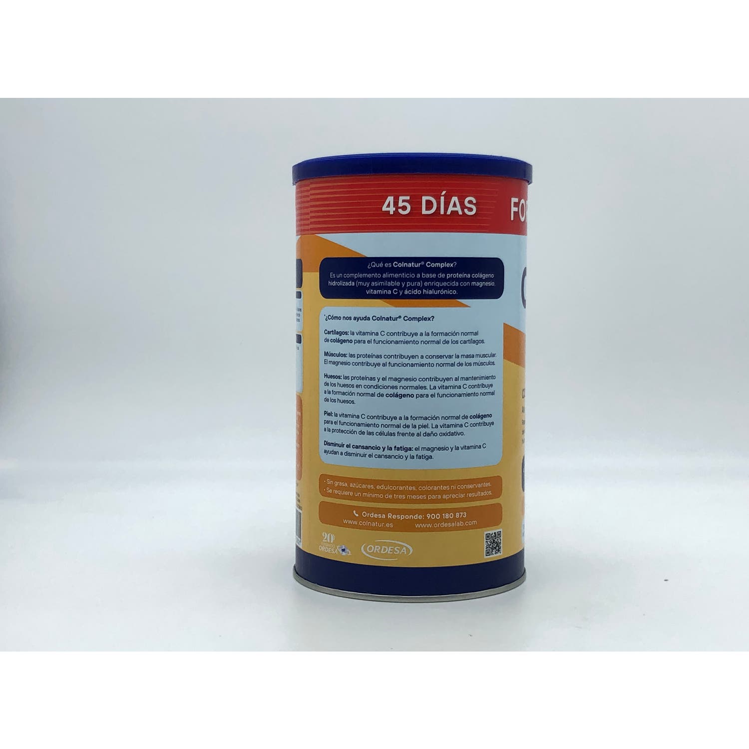 Con una composición obtenida a partir de materias primas naturales. Enriquecido con vitamina C, ácido hialurónico y magnesio, que promueven el alivio de la sensación de cansancio o fatiga. No contiene conservantes, grasas, colorantes, azúcares, edulcorantes artificiales, alérgenos ni transgénicos. Con sabor y aroma neutros, recomendado para mezclar con leche, agua o yogur.