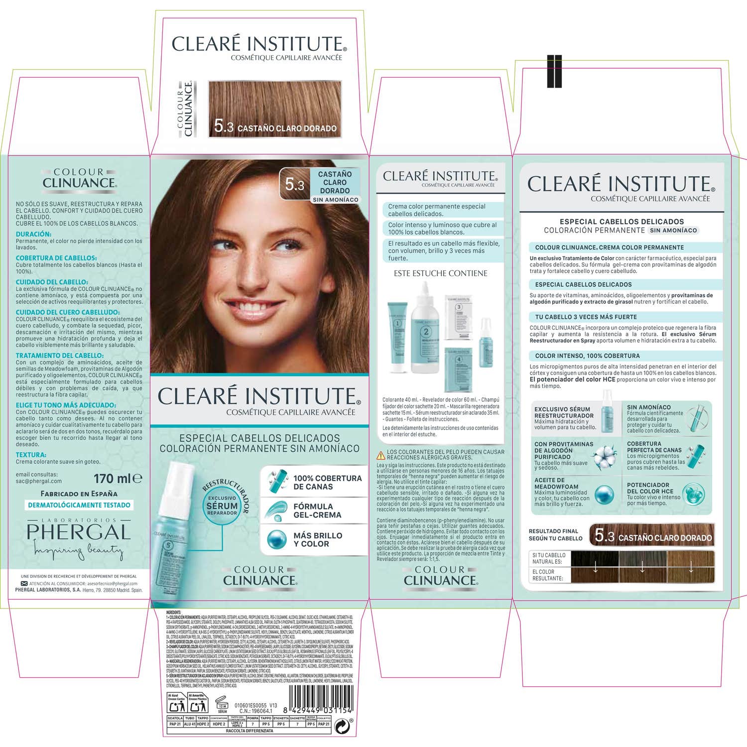 Los laboratorios Phergal presentan la gama Color Clinuance, unos tintes capilares que proporcionan una coloración dermocapilar. Con este producto, Clearé Institute confirma sus avances en tecnología cosmética y de belleza con la técnica "dermotecnología del color".