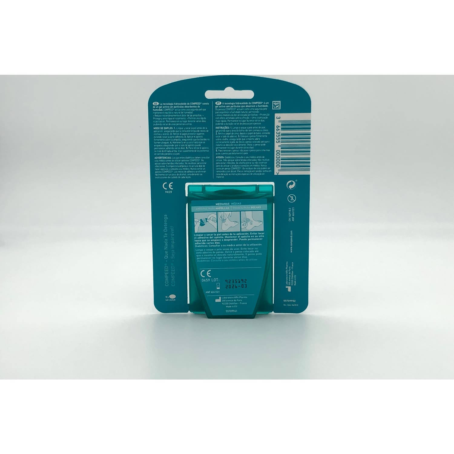 Compeed® Ampollas Medianas 10uds son unos parches hidrocoloides que ayudan a aliviar las molestias de ampollas en los dedos, en el talón o en la planta de los pies. Gracias a su tecnología, forma un gel protector que trata las ampollas y previene su aparición.