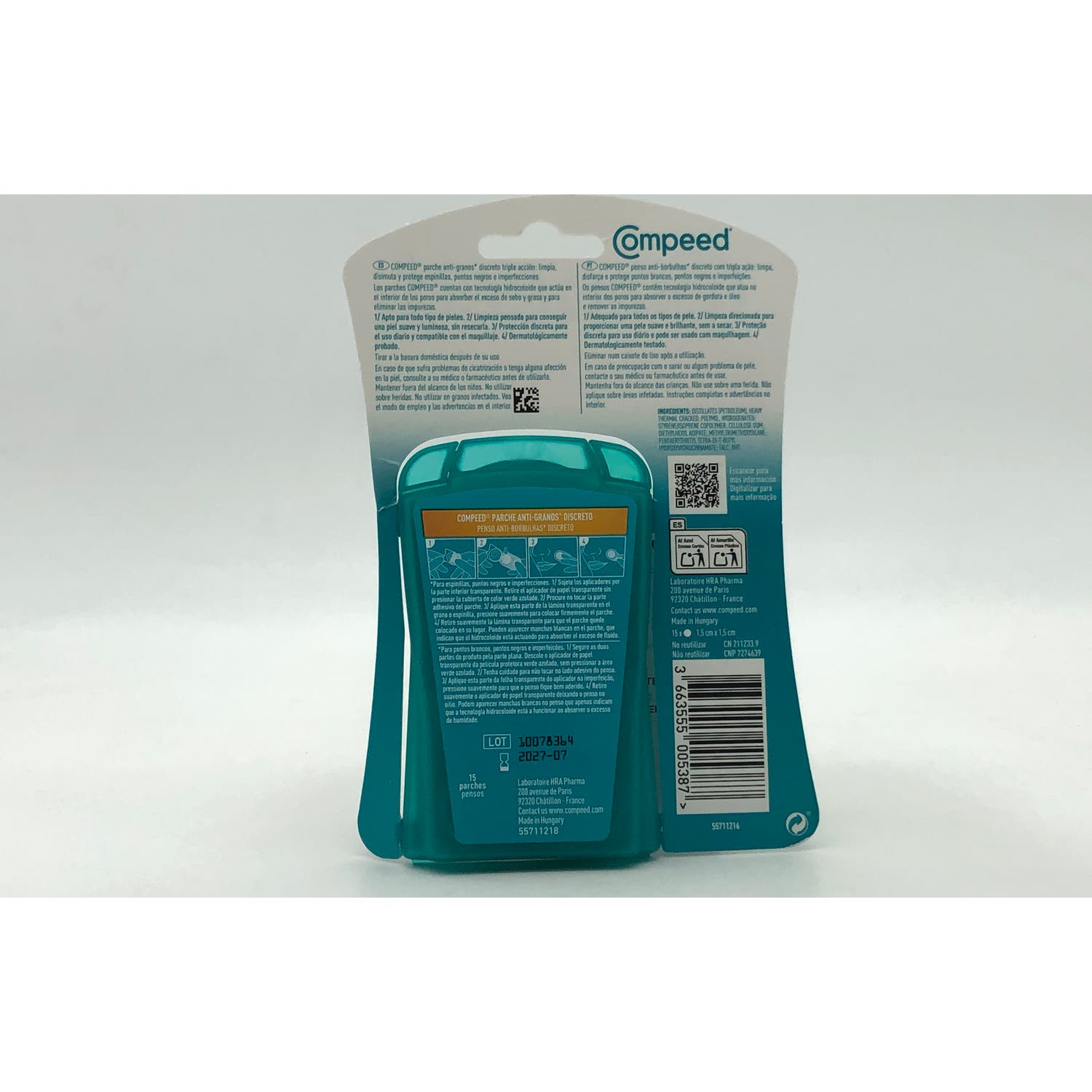 Compeed Parche Anti-granos Discreto 15uds es un parche facial limpiadores de uso diurno, fabricado con tecnología hidrocoloide.