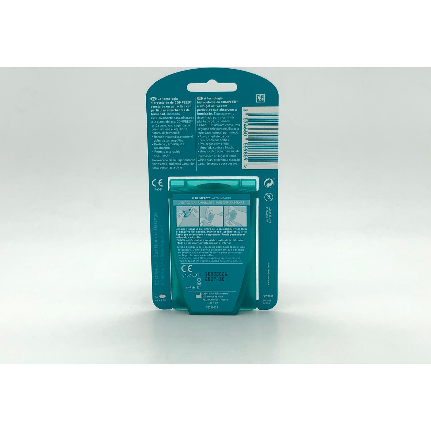 - Durabilidad: puede permanecer en su sitio durante días para proteger la ampolla correctamente
