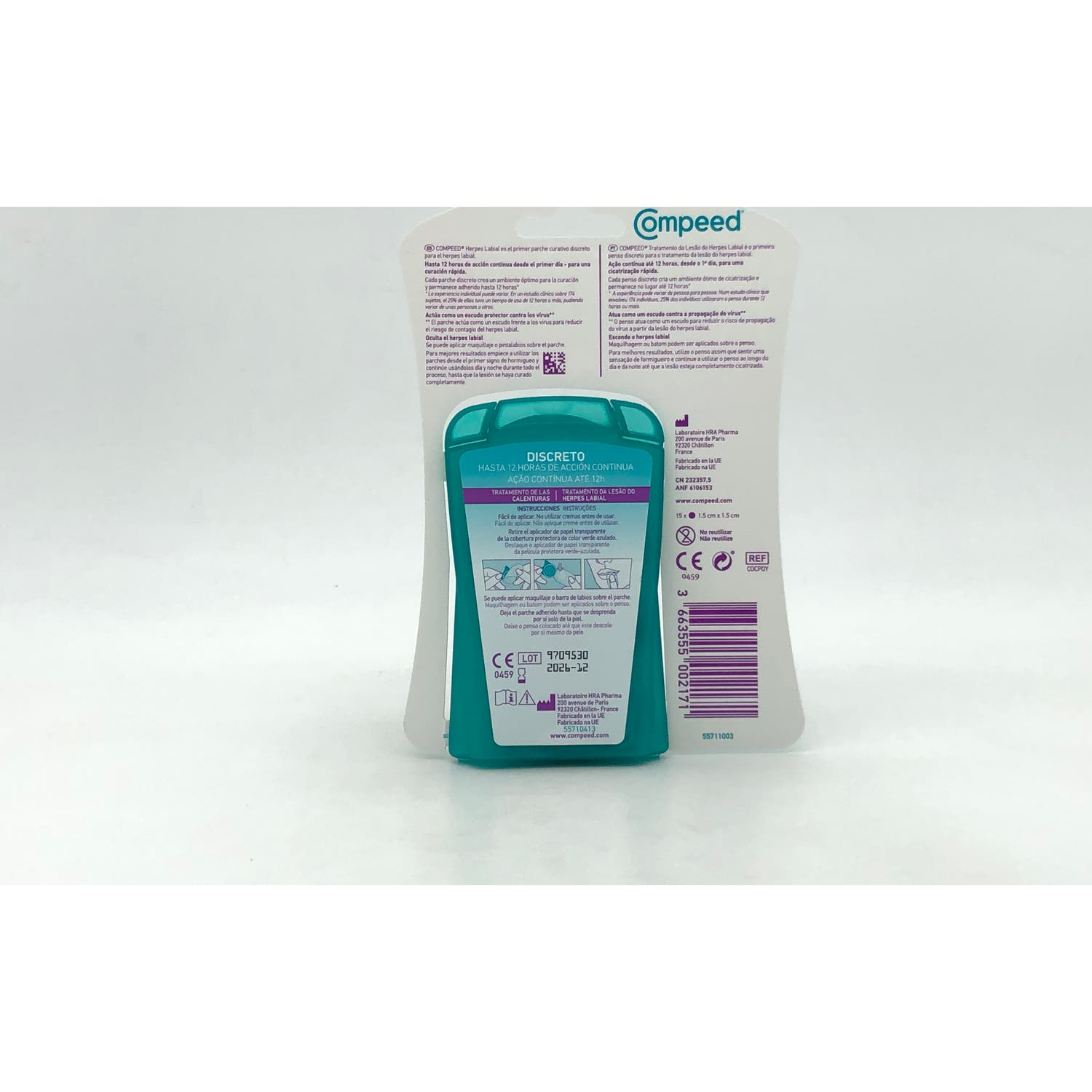 Compeed® Tratamiento de las Calenturas Discreto 15uds son parches curativos, pequeños y discretos, que favorecen la cicatrización de los herpes labiales. Su diseño se ajusta perfectamente a la zona y, gracias a su tecnología hidrocoloide, permite una curación más rápida y previene la formación de costras.