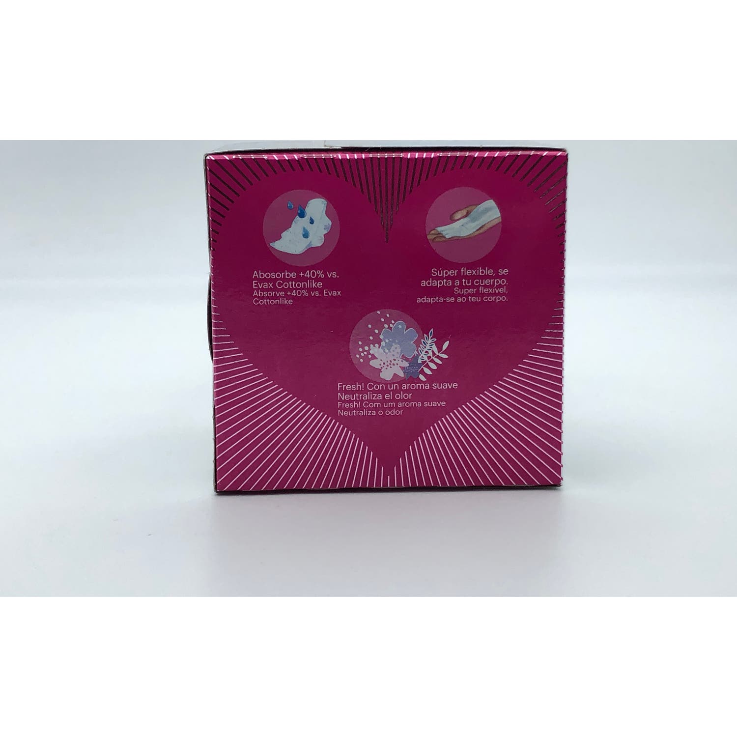Evax Liberty normal con alas son unas compresas muy flexibles para los días de flujo normal. Sus alas de doble curvatura permiten una perfecta adaptación a tu ropa interior.