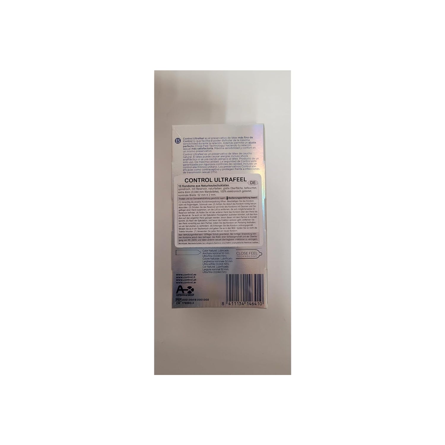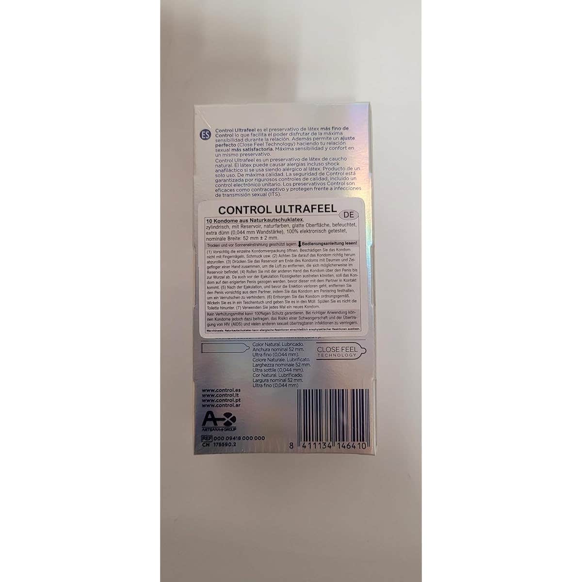 Preservativos Control Ultra Feel con 10 Preservativos. Producto diseñado un 30% más fino que la gama estándar. El producto ultra fino garantiza la máxima sensibilidad durante las relaciones gracias al mínimo grosor (0.04mm). Presenta las siguientes propiedades: anchura nominal 52 mm. Óptima lubricación y sistema de apertura fácil. Permite un ajuste perfecto (Close Feel Technology). La seguridad de Control está garantizada por rigurosos controles de calidad, incluido un control electrónico unitario. Los preservativos Control son eficaces como anticonceptivos y protegen frente a enfermedades de transmisión sexual (ETS).
