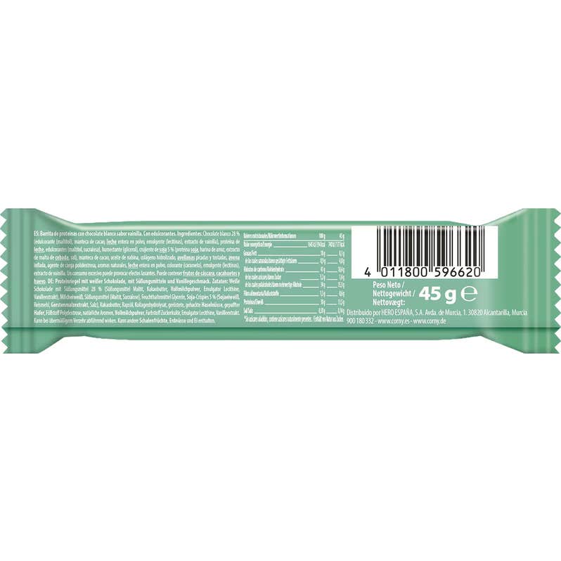 Corny 30 % Protein Crunchy Vainilla de 45 g es una barrita de proteínas que combina el sabor del chocolate blanco con un toque de vainilla. Este producto está diseñado para aportar un delicioso snack rico en proteínas, ideal para quienes buscan una opción nutritiva.