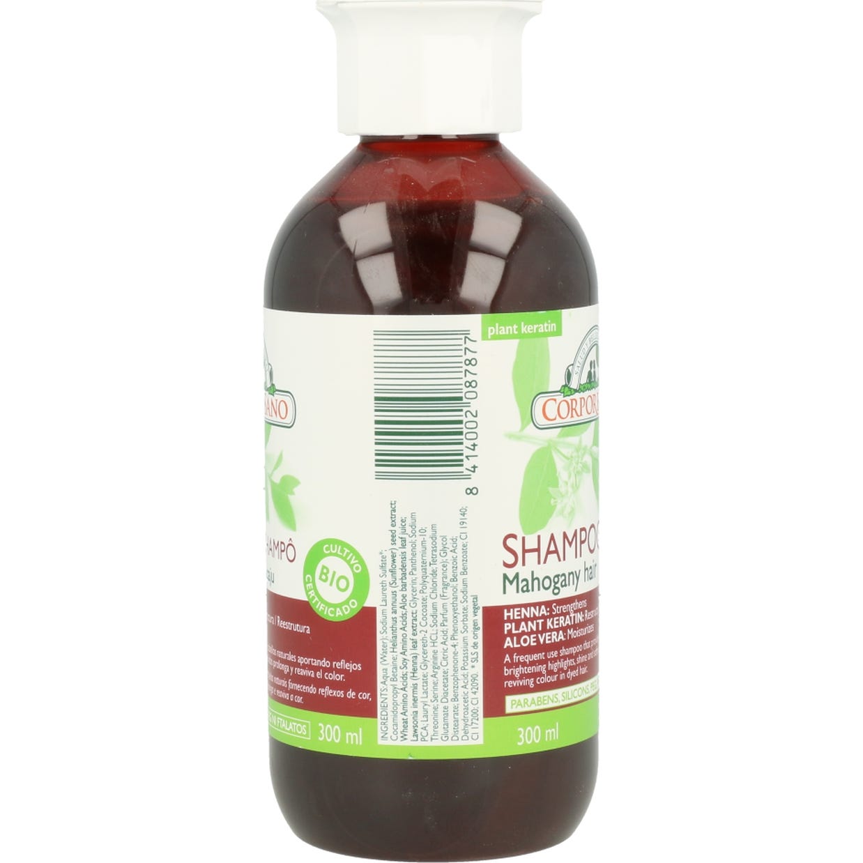 Corpore Sano Champú Cabellos Caoba 300 Ml Bio es un tratamiento que utiliza henna para reavivar y proteger el color del cabello. La henna, un componente natural de origen vegetal, actúa como pigmento tanto en la piel como en el cabello, proporcionando volumen y brillo. Además, la fórmula incluye Limnanthes Alba, que repara las puntas abiertas y protege el color. Para utilizarlo, solo tienes que aplicarlo sobre el cabello mojado, masajear suavemente hasta que aparezca espuma y luego enjuagar con abundante agua. Recuerda conservarlo en un lugar fresco y seco, fuera del alcance de los niños y evitando el contacto con los ojos y mucosas.