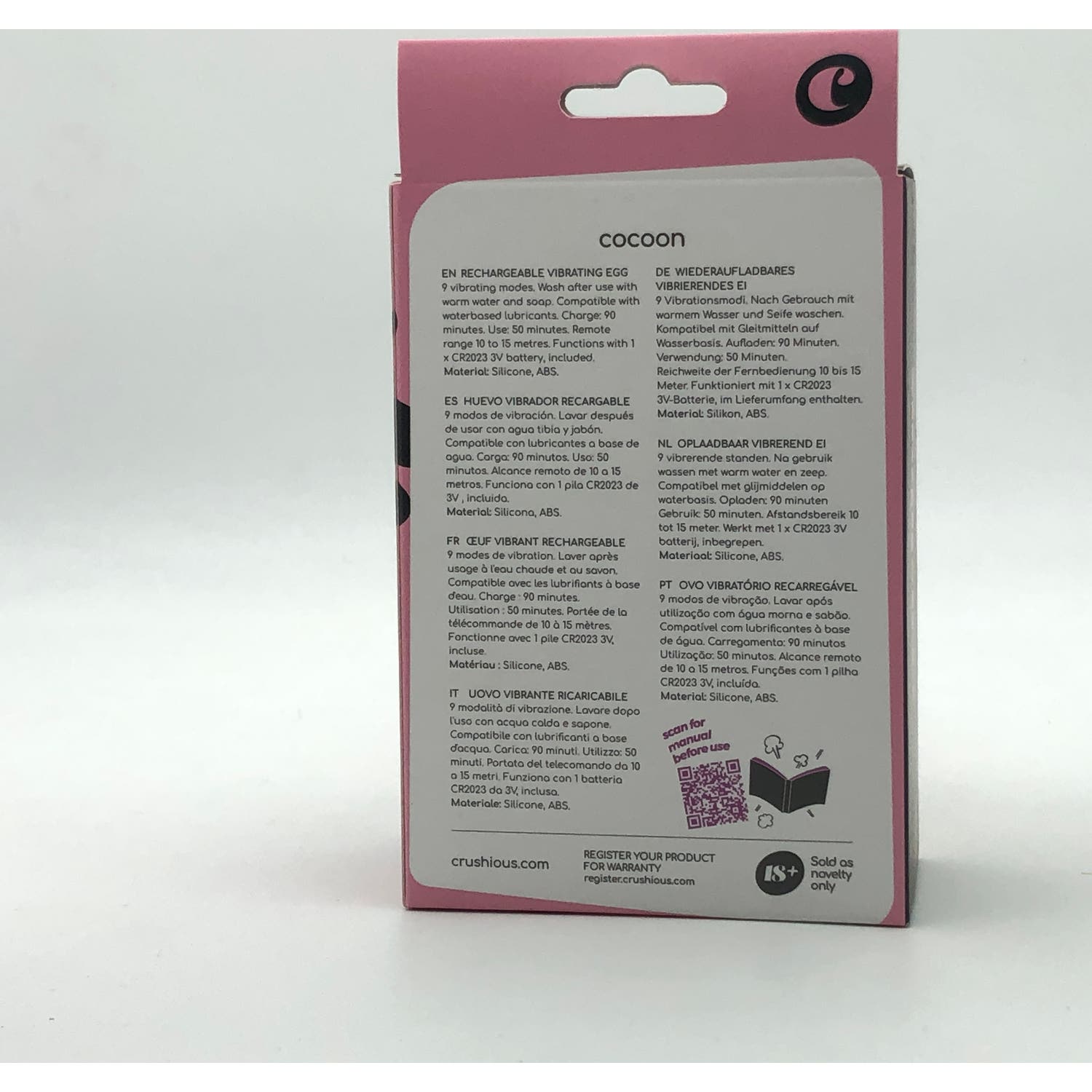 Crushious Cocoon Huevo Vibrador Recargable Negro 1ud es un huevo vibrador que ofrece una vibración multivelocidad y mando a distancia inalámbrico.