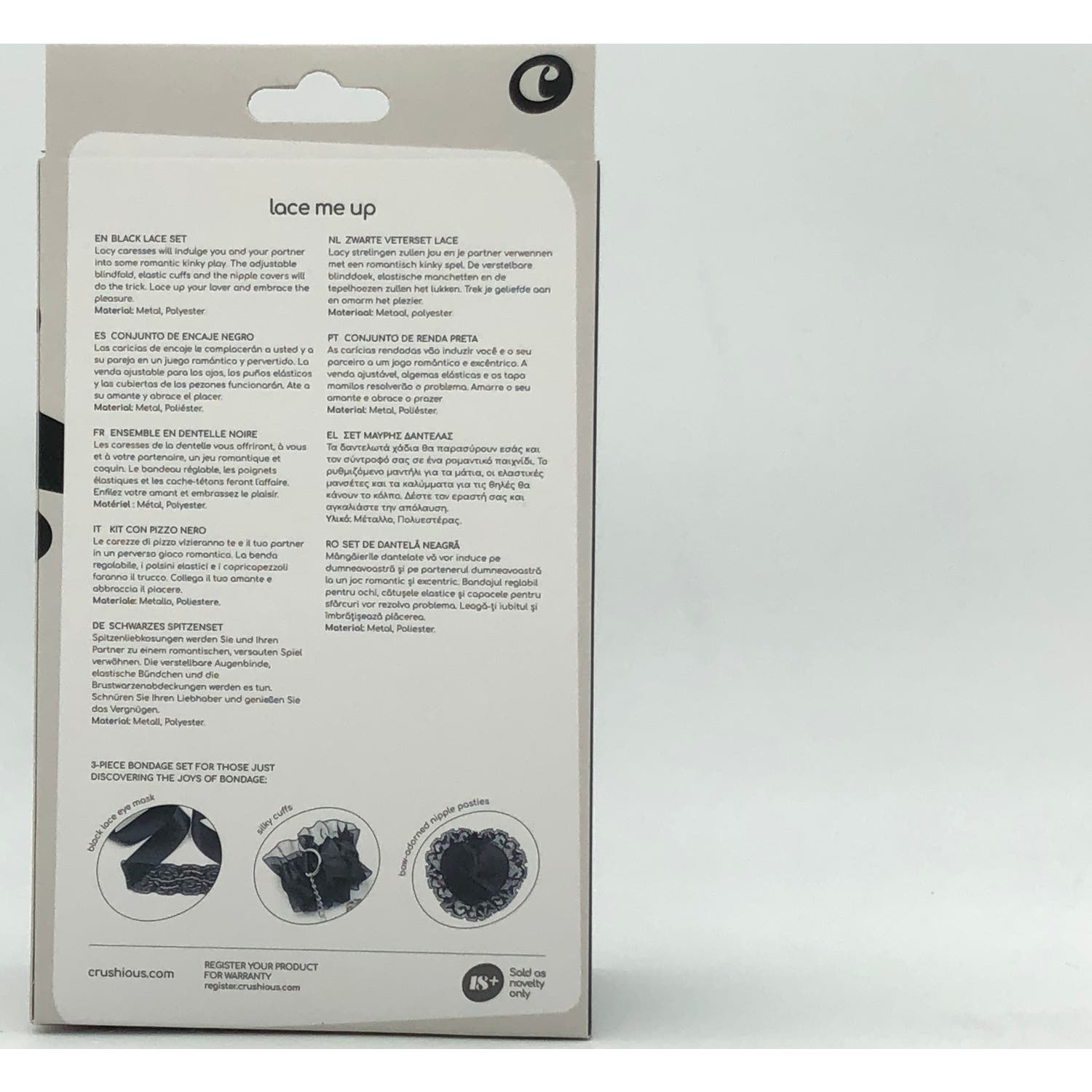 Crushious Set Lace Me Up Encaje Negro 3uds es un conjunto bondage para utilizar en juegos en pareja.