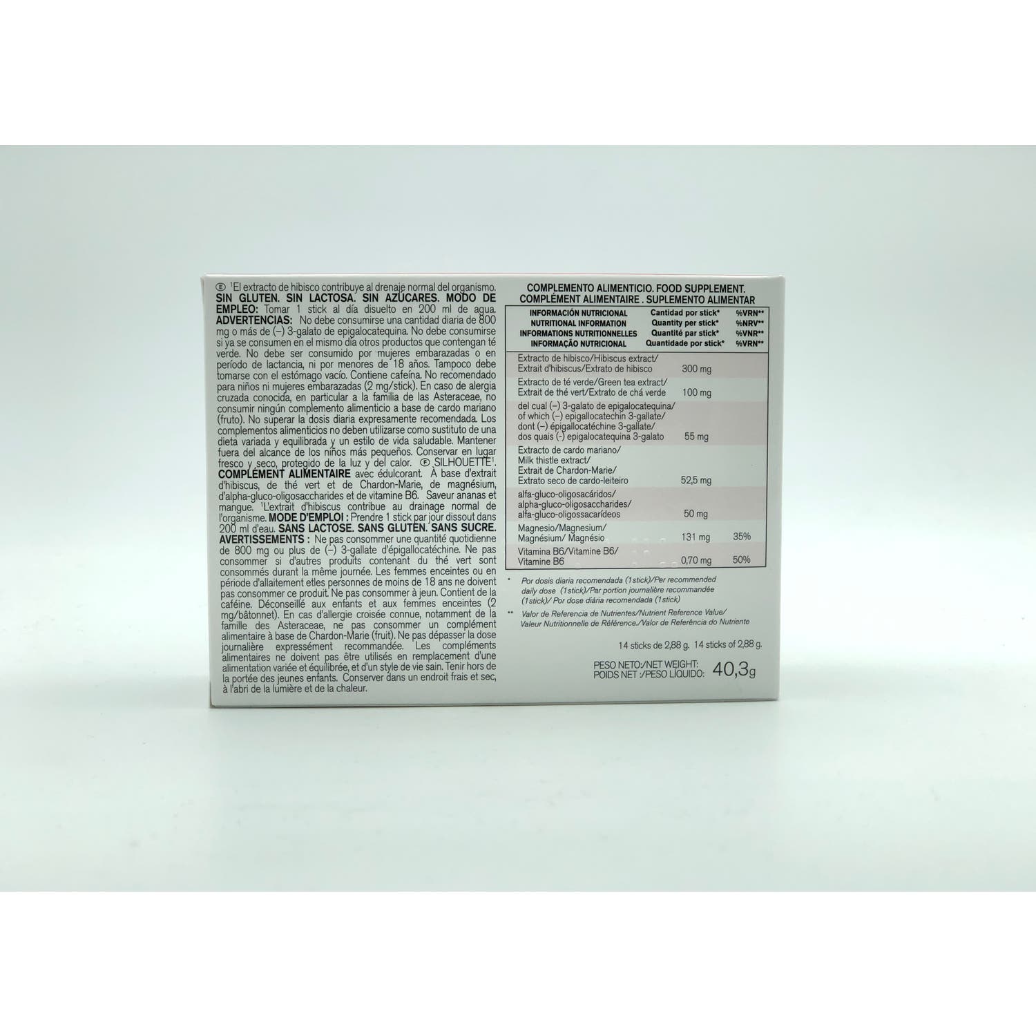 Formulado con té verde, cardo mariano, hibisco, α-gluco-oligosacáridos, magnesio y vitamina B6.