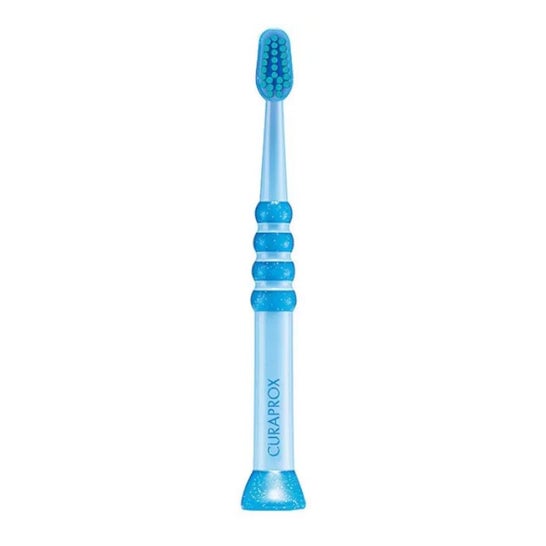 Curaprox Cepillo Dental Baby Ultra Soft Color Aleatorio 1ud es un cepillo de dientes para bebés con cerdas extra suaves. posee un mango redondeado para una manipulación más acorde a la mano del más pequeño. cuenta con 4,260 filamentos que permiten una profunda limpieza de la placa que se deposita en los dientes. las cerdas suaves del cepillo no dañan las delicadas encías de los bebés, reduciendo el riesgo de heridas y traumatismos.