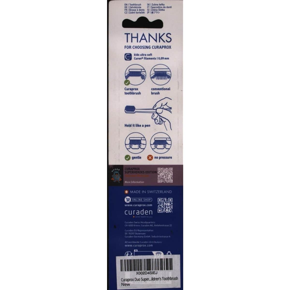 Curaprox Kids Ultra Soft Duo Superheroes Edition 2ud es un pack de 2 cepillos de dientes infantiles en diferentes colores.