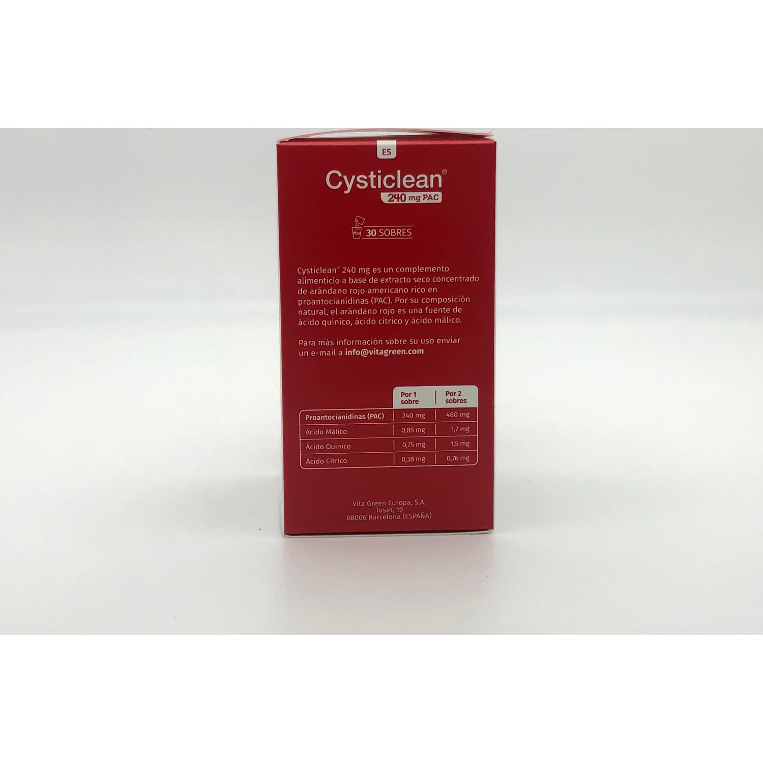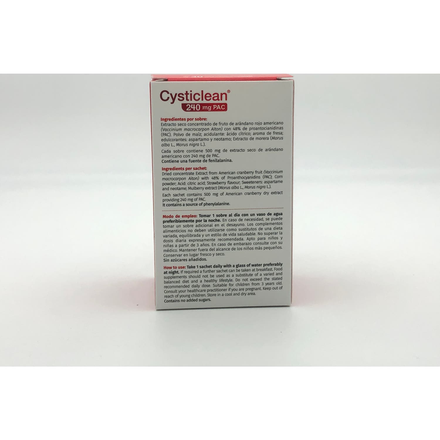 Cysticlean 240mg 30 sobres es un complemento alimenticio en formato sobres que inhibe la adherencia de la bacteria en las paredes de la vejiga.