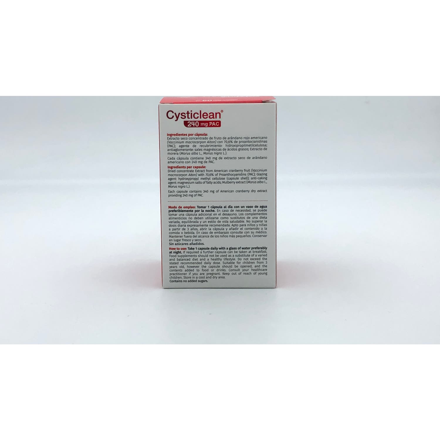 Cysticlean 240mg 60caps es un complemento alimenticio que favorece el mantenimiento de la salud urinaria. Está elaborado con ingredientes naturales que favorece que las bacterias que provocan la cistitis no se adhieran a la pared del tracto urinario, evitando así su proliferación.
