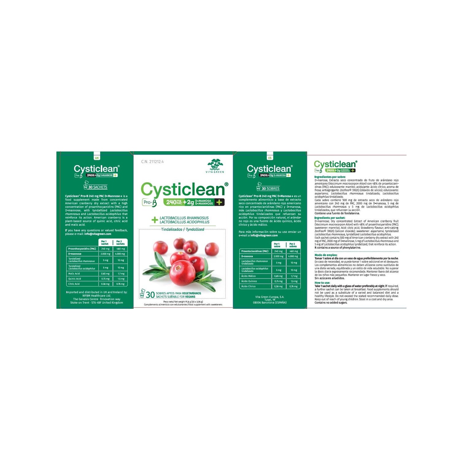 Elaborado a base de extracto seco concentrado de arándano rojo americano rico en proantocianidinas (PAC) y D-manosa, más Lactobacillus rhamnosus y Lactobacillus acidophilus tindalizados que refuerzan su acción.