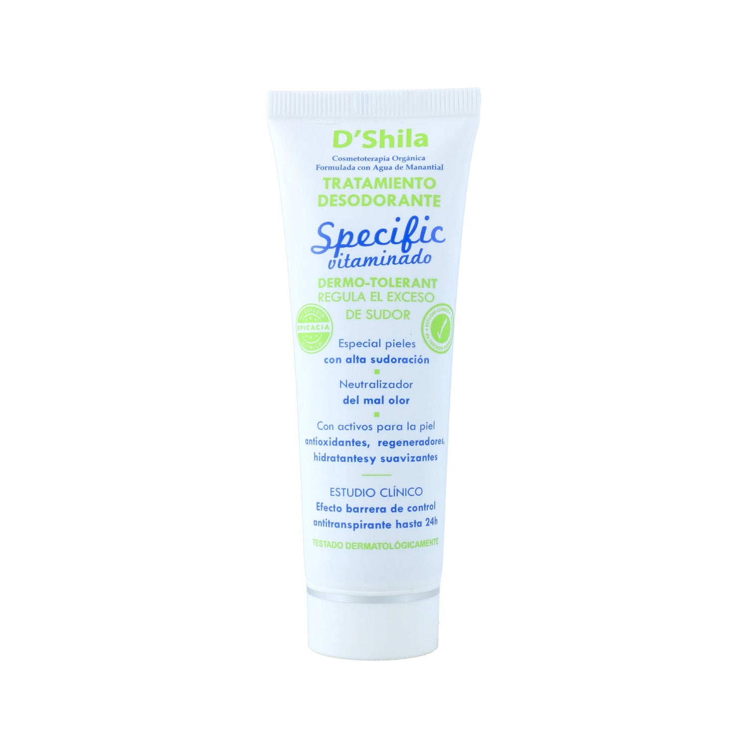D'shila desodorante Specific es un remedio ideal para combatir las pieles que sufren problemas graves de sudor y olor desagradable. Repele los fuertes olor, reduce la sensación de humedad y mejora la hidratación de la piel.