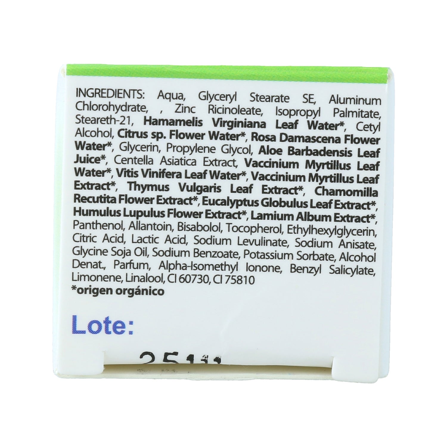Enriquecido con aloe vera orgànico consigue mejorar la salud de la dermis, al mismo tiempo que suaviza y nutre la superficie de la piel. Conseguirás unas axilas mucho más limpias, sanas y, esepcialmente, secas.