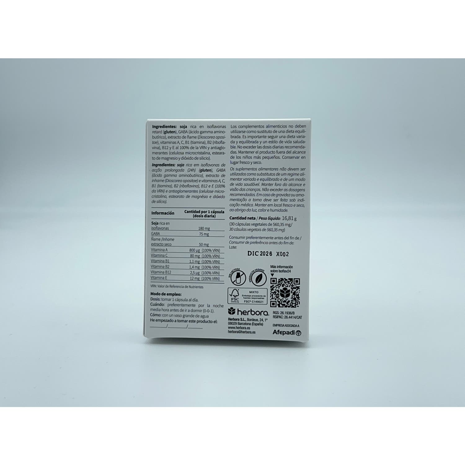 También contiene GABA (ácido gamma aminobutírico), extracto de ñame y vitaminas (A, C, B1, B2, B12 y E).