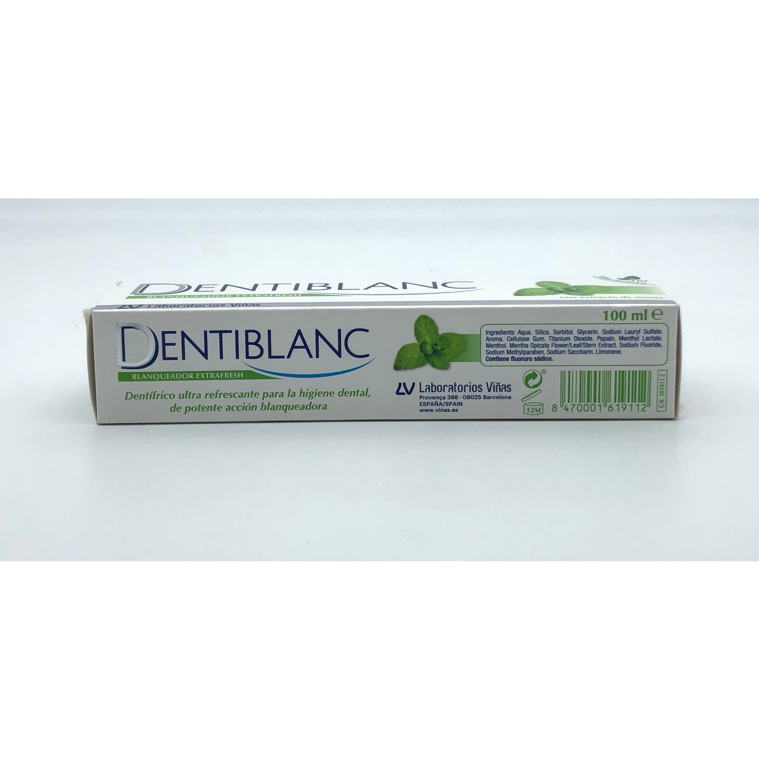 Dentiblanc Extrafresh es una pasta de dientes específicamente preparada para ofrecer una buena higiene bucal diaria. Con una acción refrescante, te aportará una sensación de limpieza y salud, y la acción blanqueante del dióxido de titanio te ayudará a recuperar el color natural de tus dientes.