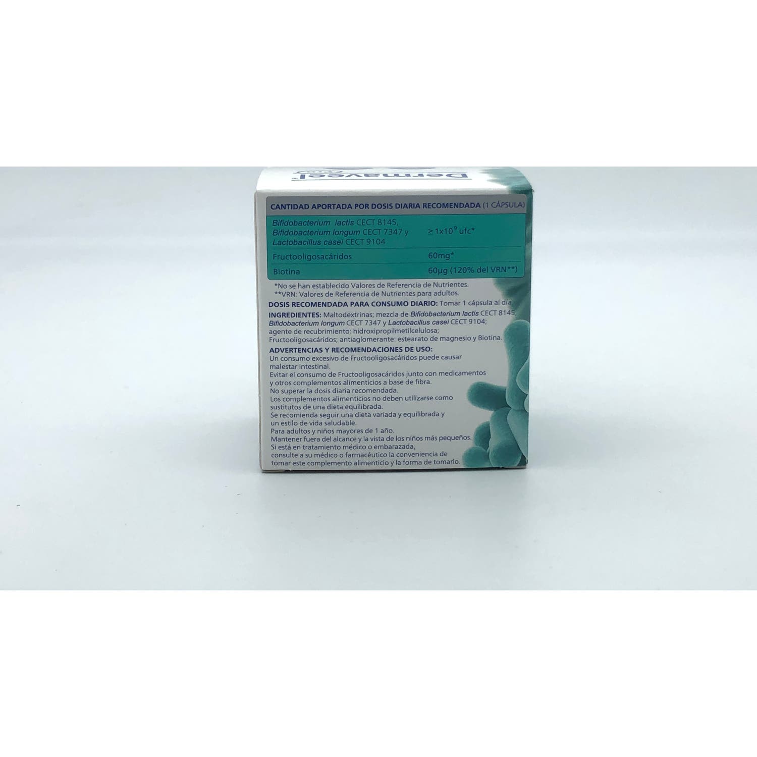 Complemento alimenticio que ayuda a mantener la piel en condiciones normales. Está compuesto por una mezcla de bifidobacterias y lactobacilos que favorecen el equilibrio de la microbiota intestinal.