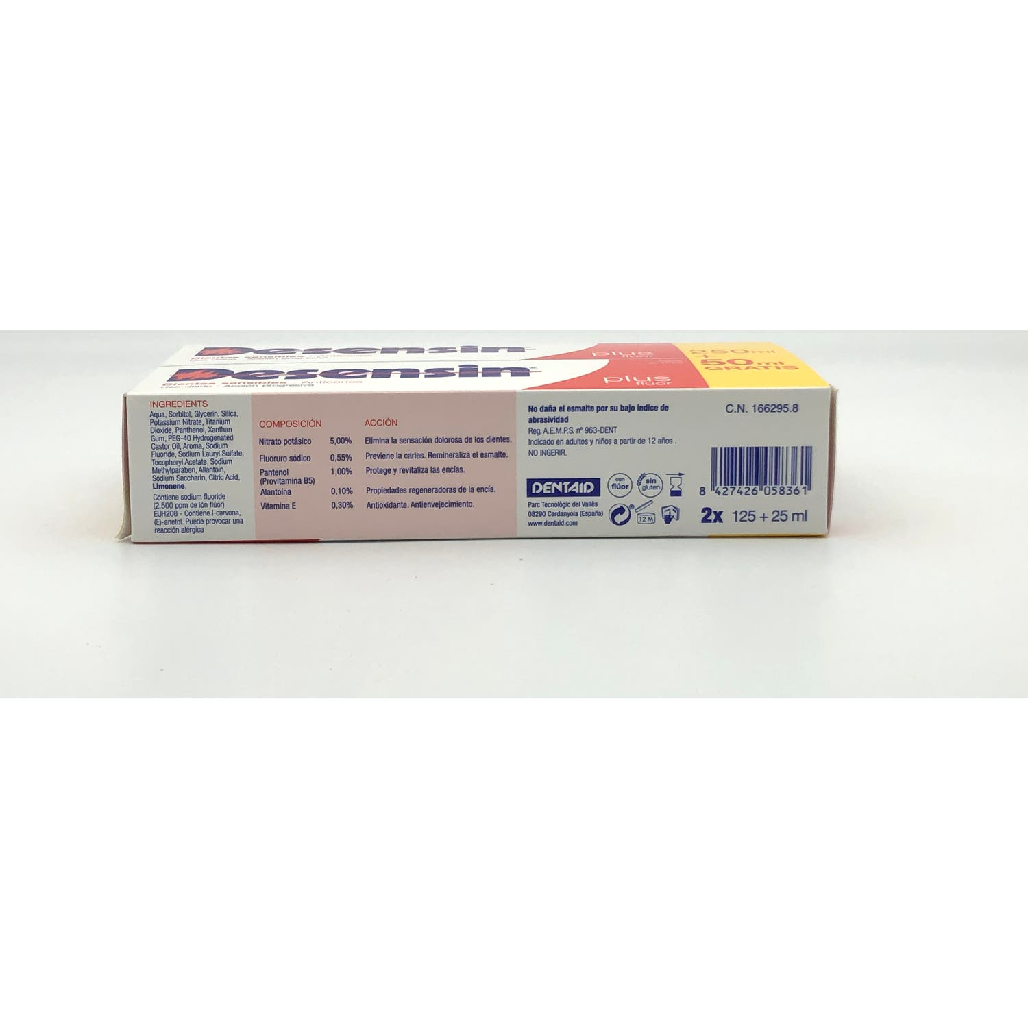 Desensin Plus Dientes Sensibles 2x150ml es un dentífrico con acción desensibilizante progresiva y un efecto protector ante estímulos externos como frío, calor, ácido y presión de dientes y encías.