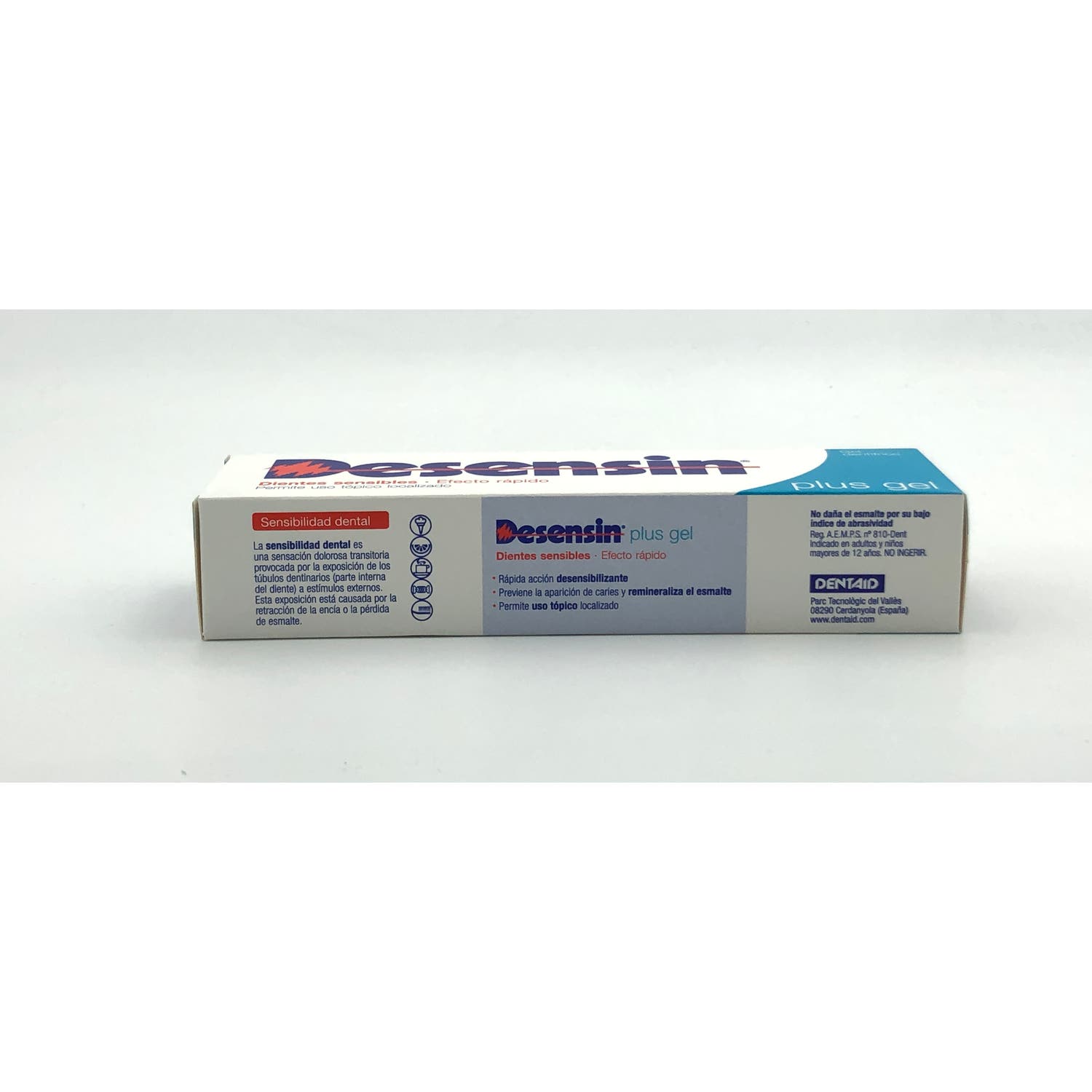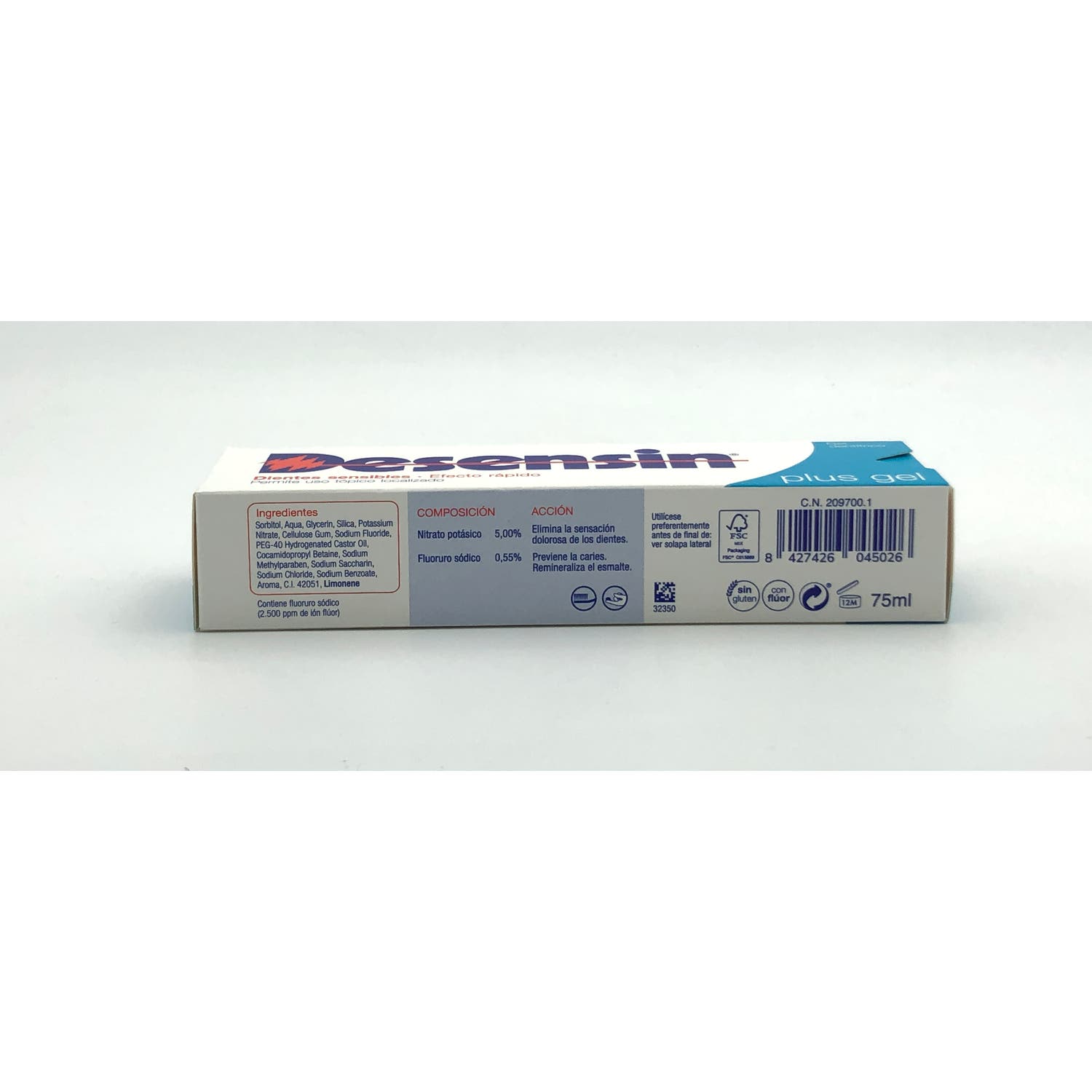 Desensin Plus Gel Dentífrico es un gel diseñado para aliviar la sensibilidad dental aguda de forma rápida y localizada, con una acción desensibilizante y anticaries. Su fórmula a base de nitrato potásico y flúor ayuda a inhibir los estímulos nerviosos y a prevenir la formación de caries, protegiendo el esmalte dental. Este gel está recomendado para personas con sensibilidad dental extrema que necesitan una acción desensibilizante inmediata. Se recomienda cepillar los dientes 3 veces al día, aplicando una pequeña cantidad de gel y realizando movimientos circulares de la encía al diente. También se puede aplicar de forma tópica en las zonas más sensibles. Es aconsejable utilizar hilo dental y enjuague bucal para una limpieza completa.