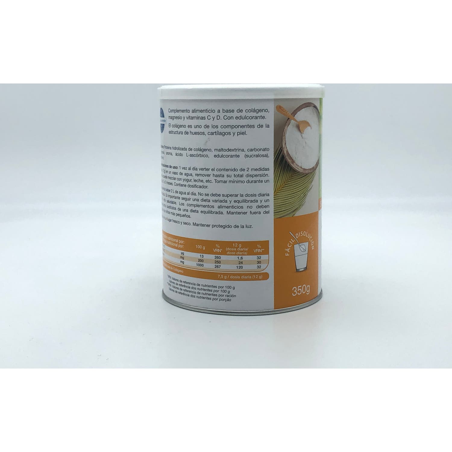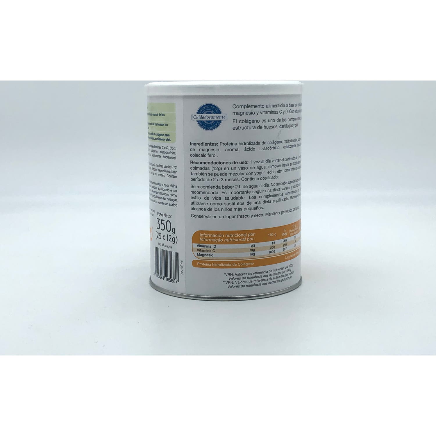 POR DOSIS DIARIA (=12G); PROTEÍNA HIDROLIZADA DE COLÁGENO 7,5G, MALTODEXTRINA, CARBONATO DE MAGNESIO, AROMA, ÁCIDO L-ASCÓRBICO, EDULCORANTE: SUCRALOSA Y COLECALCIFEROL (VITAMINA D3).
