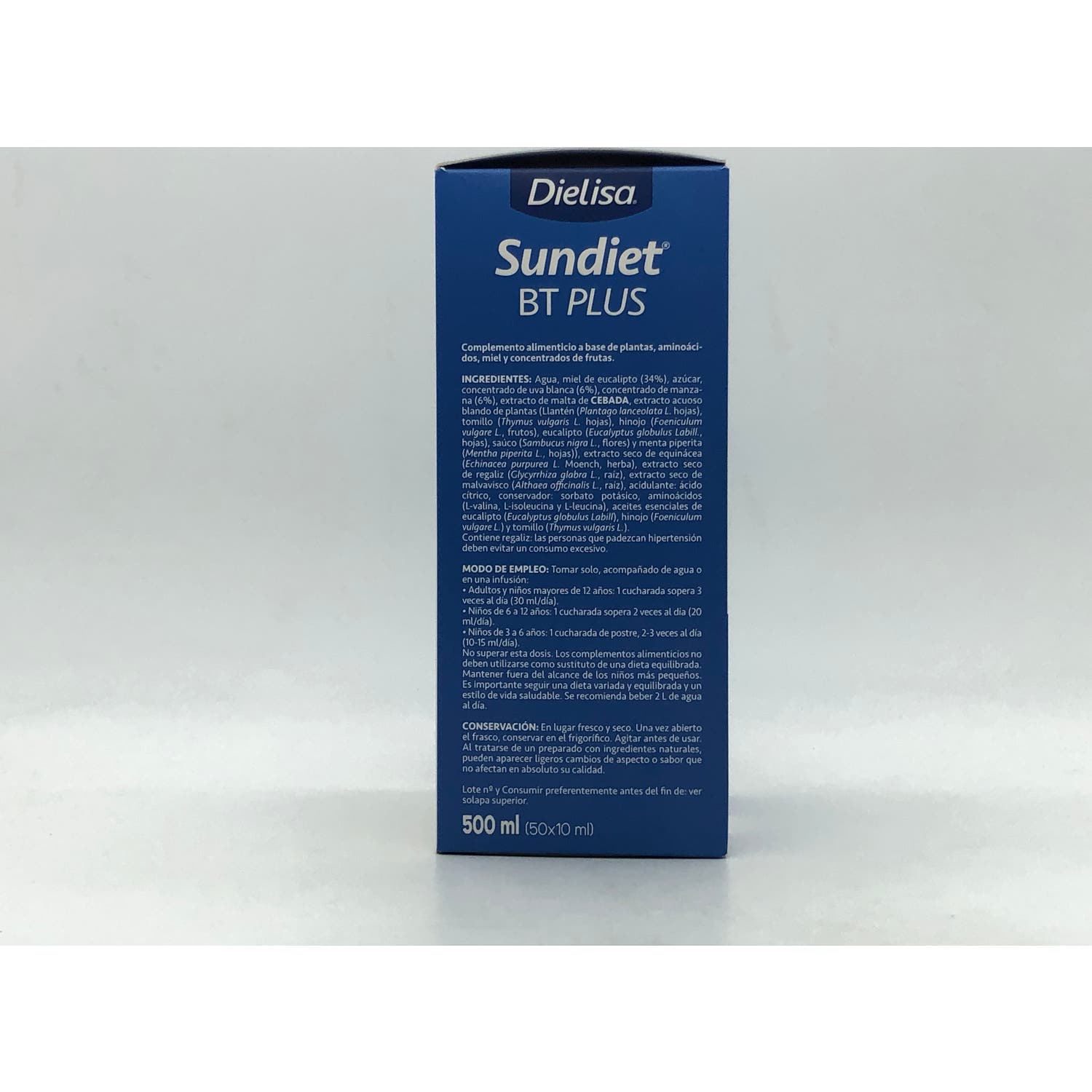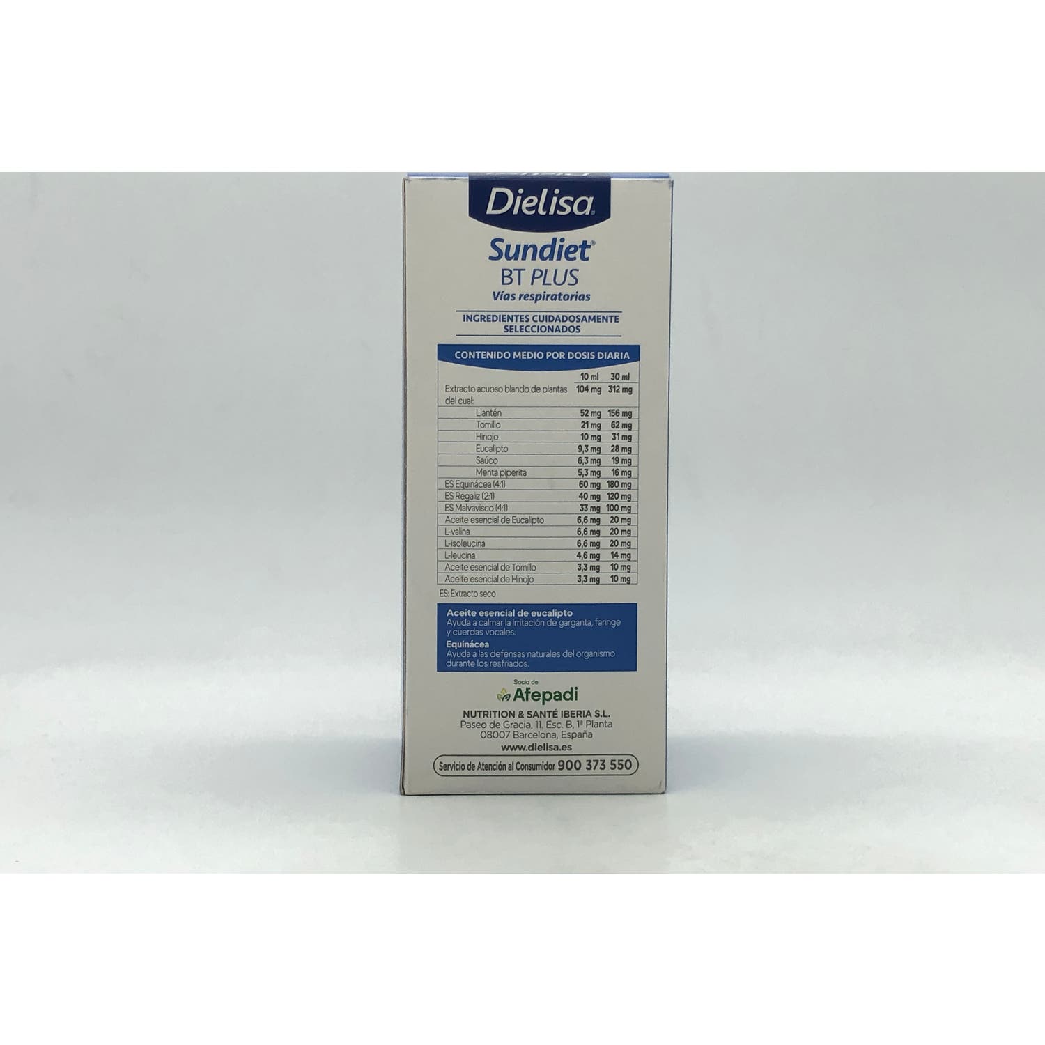 Dietisa Sundiet BT Plus es un complemento alimenticio que ayuda a calmar las irritaciones de la garganta y las vías respiratorias superiores. Además, también refuerza el sistema inmunitario y ayuda a aumentar las defensas. Indicado para época de invierno, tanto para niños como para adultos con resfriados o catarros.
