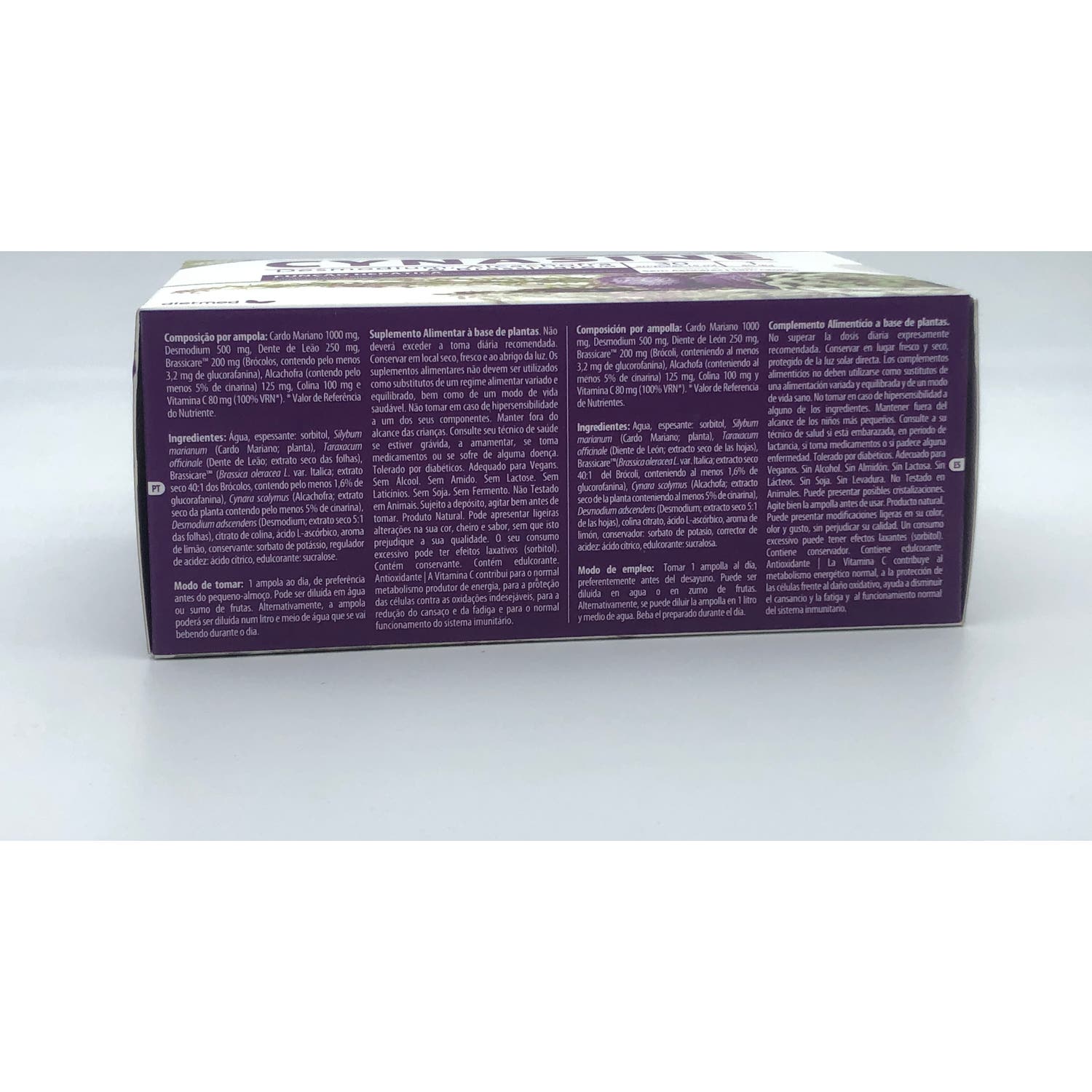 Suplemento nutricional que contribuye a mantener la salud y correcta actividad de la función hepática. Con alcachofa y flores de cardo. Tiene propiedades desintoxicantes que benefician y mejoran la digestión, ya que favorece la secreción de bilis. Contribuye a una normal función genética y estimula la eliminación de gases. Aporta una acción protectora y ayuda a la regeneración hepática. No contiene azúcares añadidos, gluten ni lactosa.