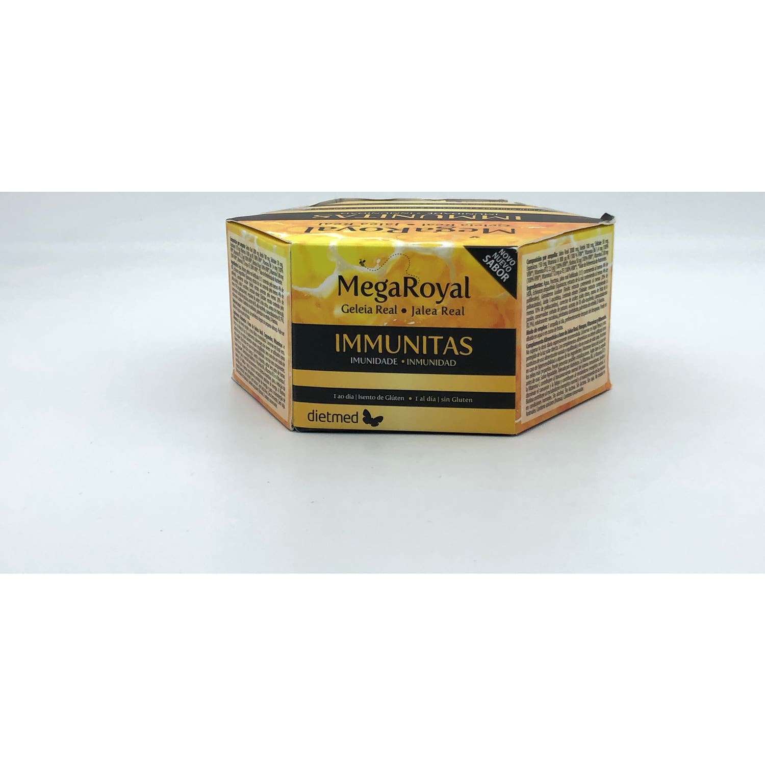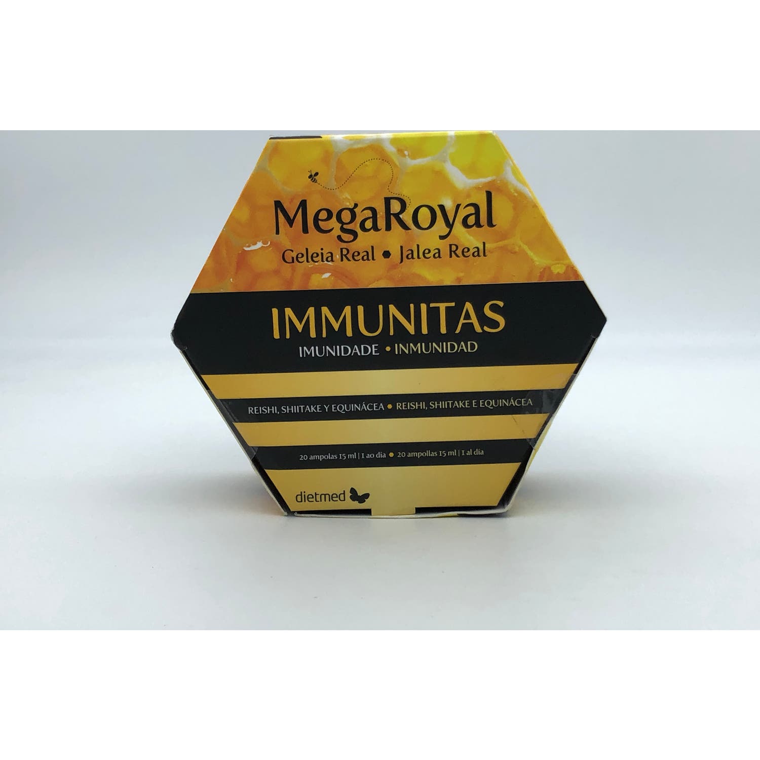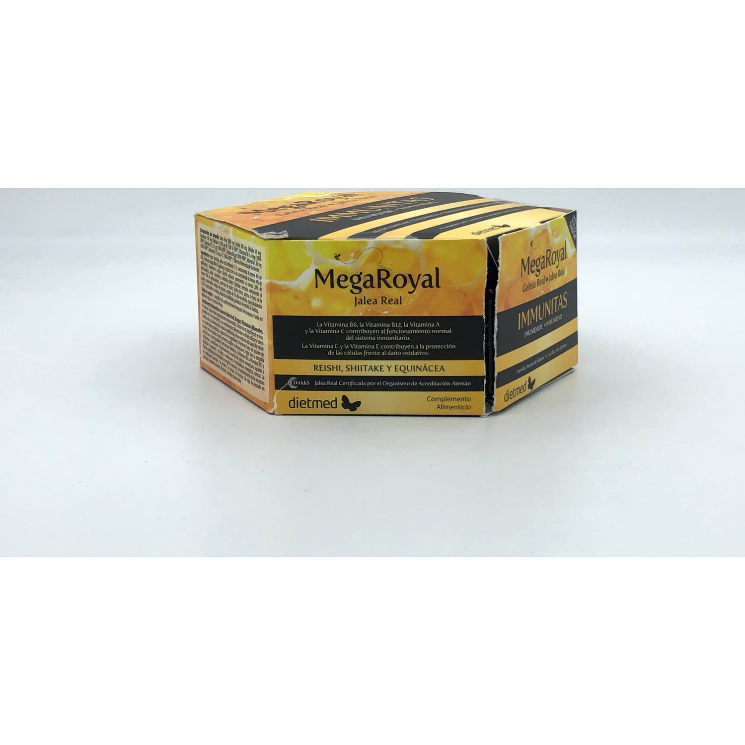 Dietmed Megaroyal Jalea Immunitas 20x10ml es un complemento alimenticio en formato de ampollas con Jalea Real. Aporta los minerales, vitaminas y proteínas necesarios para el día a día.