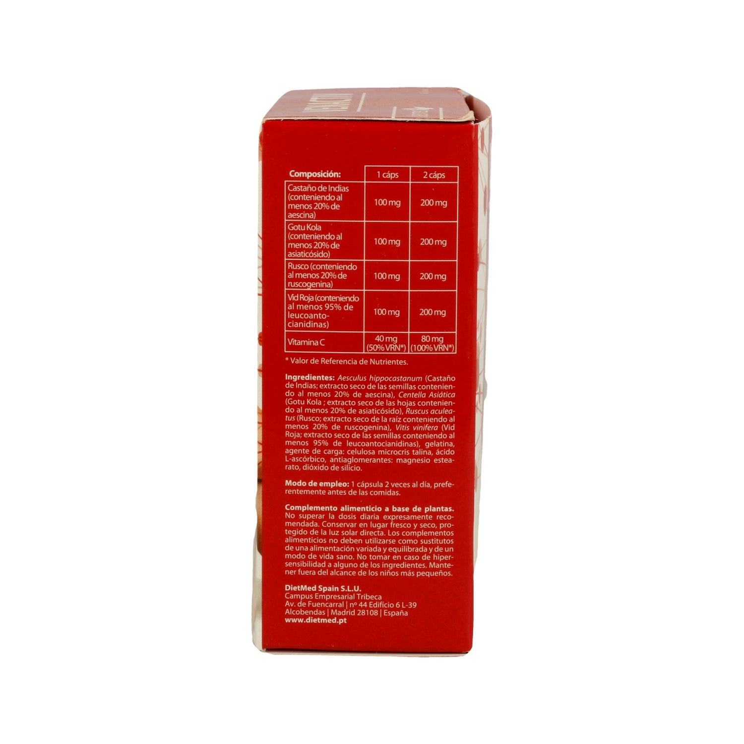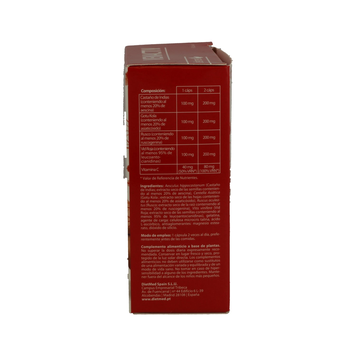 Complemento alimenticio formulado a base de castaño de indias, vid roja y gotu kola. Contribuye al mantenimiento normal de la actividad circulatoria. Sus ingredientes favorecen la elasticidad natural de los vasos sanguíneos. Indicado para adultos. No apto en caso de embarazo o lactancia.