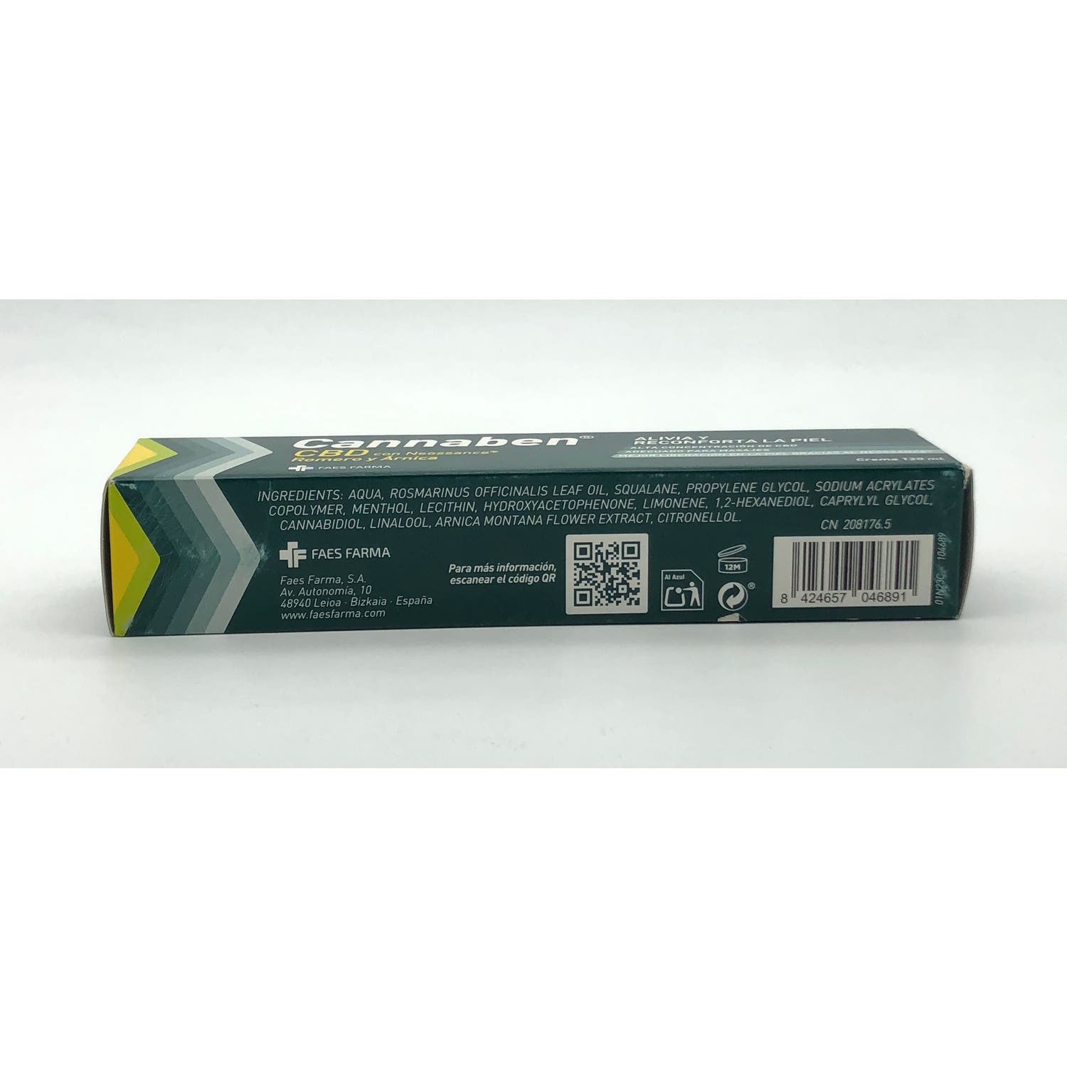 AGUA, ACEITE ESENCIAL DE ROMERO (ROSMARINUS OFFICINALIS), ACEITE NEOSSANCE SQUALANE, PROPILENGLICOL, COPOLÍMERO DE ACRILATOS DE SODIO, MENTOL, LECITINA, HIDROXIACETOFENONA, LIMONENO, 1,2-HEXANEDIOL, CAPRILILGLICOL, CANNABIDIOL, LINALOL, EXTRACTO DE ÁRNICA (ARNICA MONTANA) Y CITRONELOL.