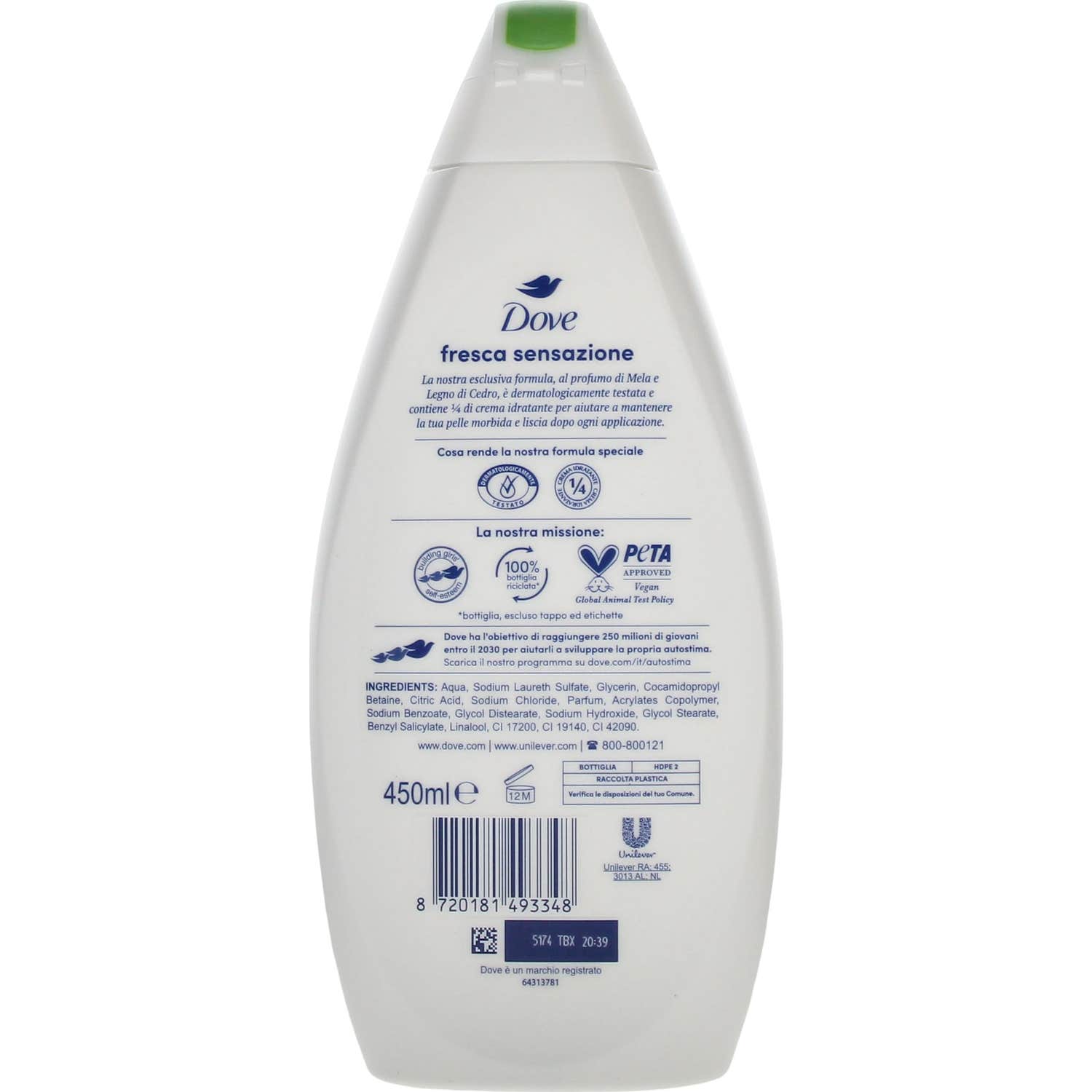 Dove Gel de Ducha Fresca Sensazione 450ml es un producto diseñado para revitalizar la piel. Este gel combina el cuidado característico de Dove con extractos naturales de manzana y cedro, ofreciendo una experiencia refrescante al inicio del día.