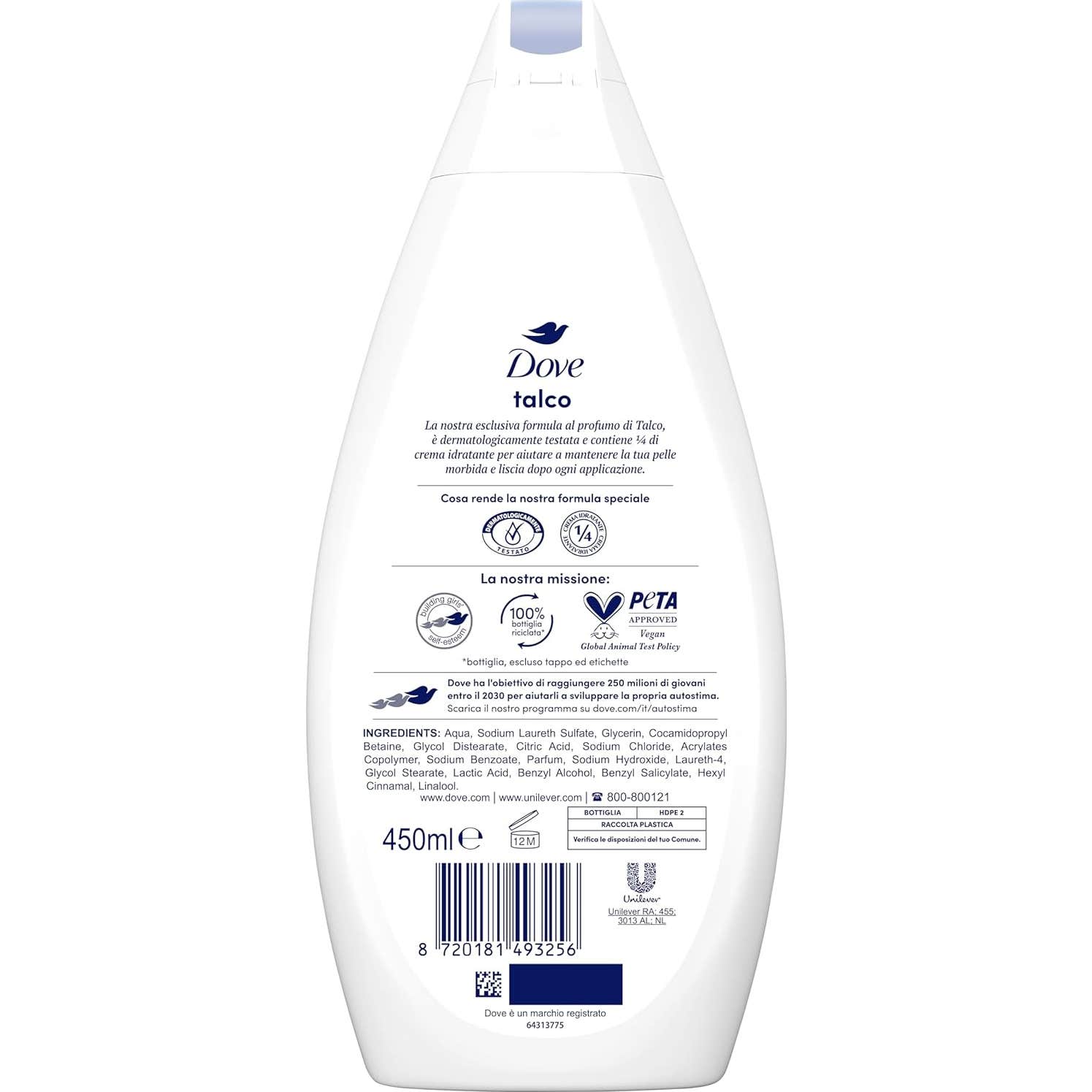 Dove Gel de Ducha Talco 450ml es un producto diseñado para transformar la experiencia del baño en un momento de relajación y cuidado de la piel. Su fórmula hidratante, que contiene un cuarto de crema humectante, proporciona suavidad y nutrición duraderas. Este gel ha sido dermatológicamente probado para garantizar su eficacia y seguridad en todo tipo de piel.