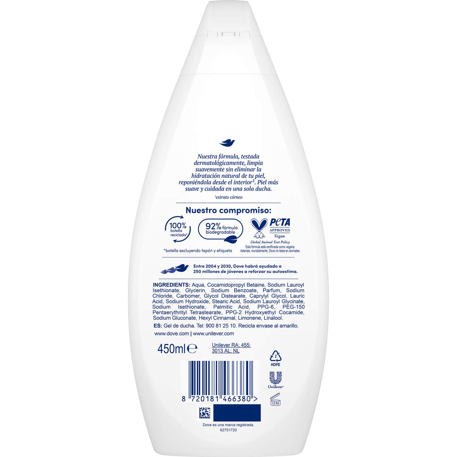 La fórmula de Dove Hidratante contiene:
