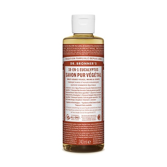 Dr. Bronners Sav Liq Eucalyp 240ml es un jabón líquido ideal para una limpieza natural y efectiva en el cuidado diario del cuerpo. Formulado con aceites orgánicos certificados y esencia pura de eucalipto, proporciona una experiencia refrescante y revitalizante para la higiene de la piel, siendo una opción consciente y respetuosa con el medio ambiente.