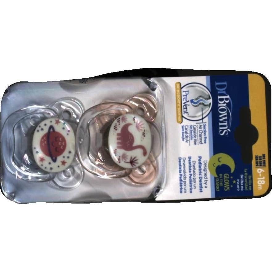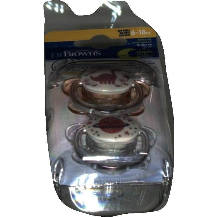 Dr Brown's Chupete Silicona Nocturno 6 a 18 Meses Rosa 2uds son chupetes de uso nocturno con tetina reversible fabricada en silicona de grado médico. Pack de 2 chupetes color rosa.
