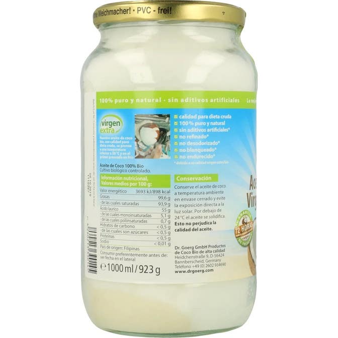 Dr. Goerg Aceite de Coco Bio 1000 ml es un producto ideal para toda la familia. Este aceite de coco virgen premium se presenta en un práctico envase de gran capacidad, lo que lo convierte en una opción económica y conveniente.