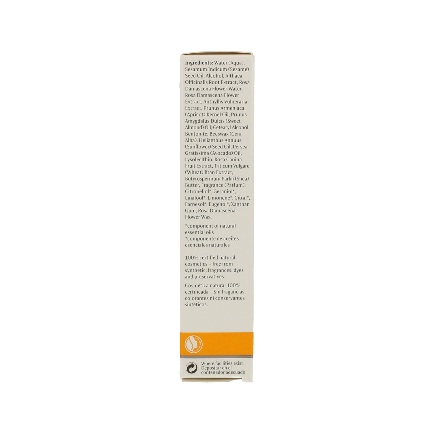 Water (Aqua), Sesamum Indicum (Sesame) Seed Oil, Alcohol, Althaea Officinalis Root Extract, Rosa Damascena Flower Water, Rosa Damascena Flower Extract, Anthyllis Vulneraria Extract, Prunus Armeniaca (Apricot) Kernel Oil, Prunus Amygdalus Dulcis (Sweet Almond) Oil, Cetearyl Alcohol, Bentonite, Beeswax (Cera Alba), Helianthus Annuus (Sunflower) Seed Oil, Persea Gratissima (Avocado) Oil, Lysolecithin, Rosa Canina Fruit Extract, Triticum Vulgare (Wheat) Bran Extract, Butyrospermum Parkii (Shea) Butter, Fragrance (Parfum)*, Citronellol*, Geraniol*, Linalool*, Limonene*, Citral*, Farnesol*, Eugenol*, Xanthan Gum, Rosa Damascena Flower Wax. *componente natural de aceites esenciales