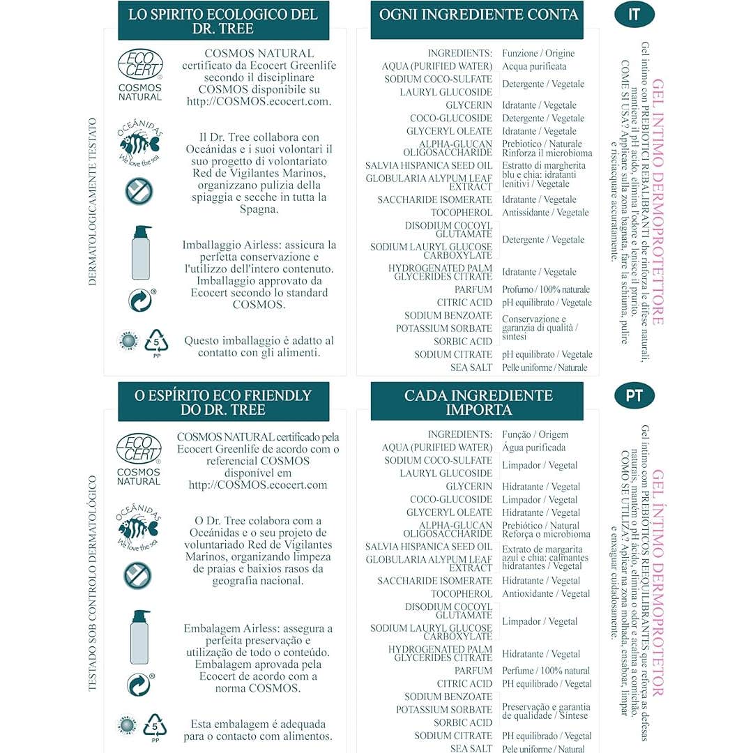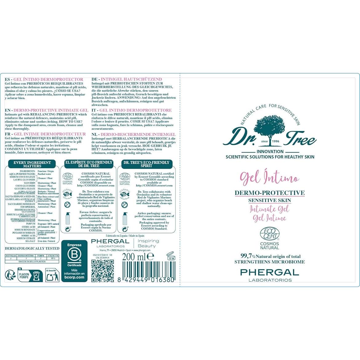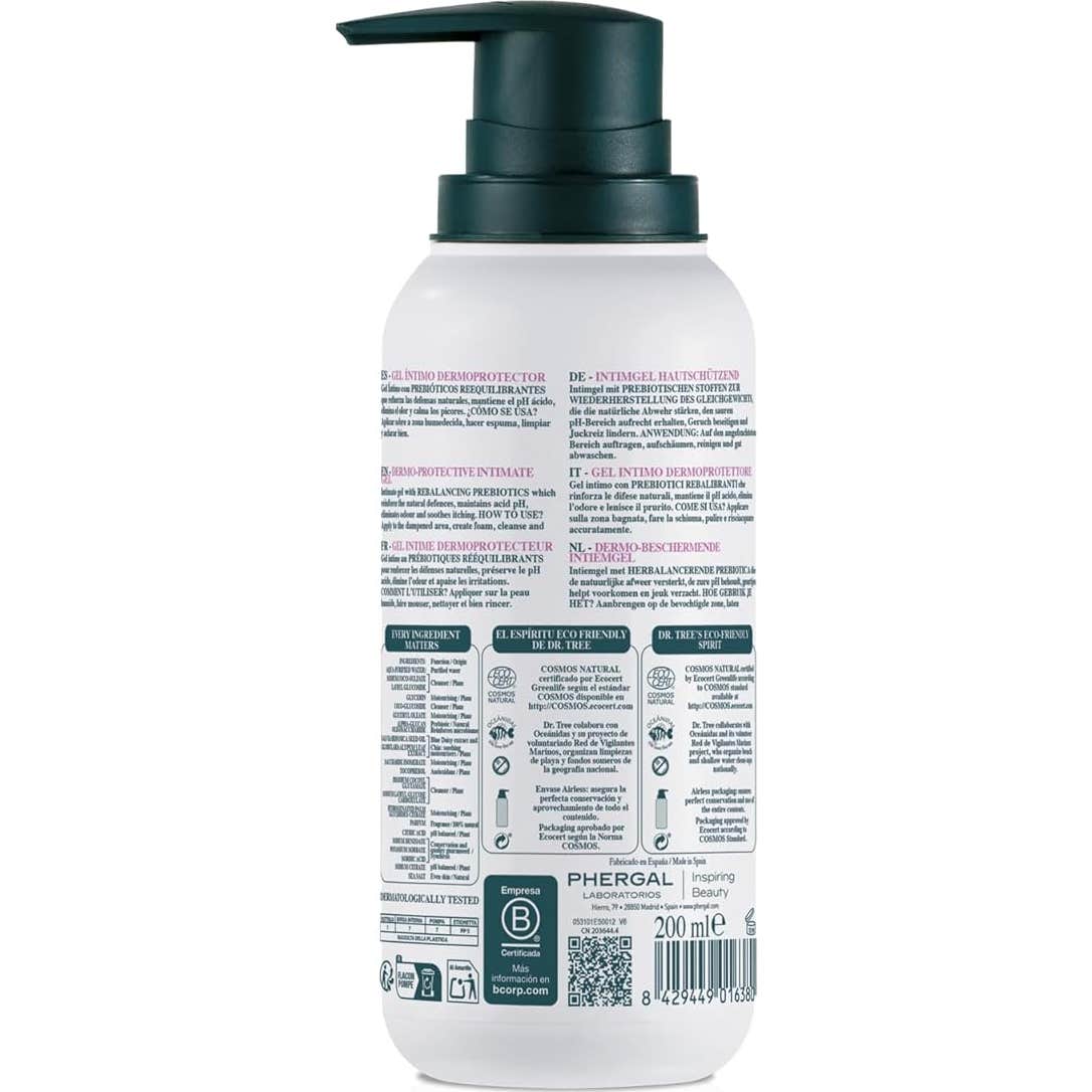 Gel íntimo prebiótico y Dermoprotector Natural específico para una correcta higiene íntima. Con prebióticos reequilibrantes, el gel de higiene íntima natural que estimula las defensas naturales, mantiene el pH ácido, elimina el olor y alivia la picazón. Respeta la capa protectora natural de la piel y restaura la barrera cutánea para un correcto equilibrio de la zona íntima. Apto para ambos sexos. Fortalece el microbioma. Para un correcto equilibrio de la flora vaginal.