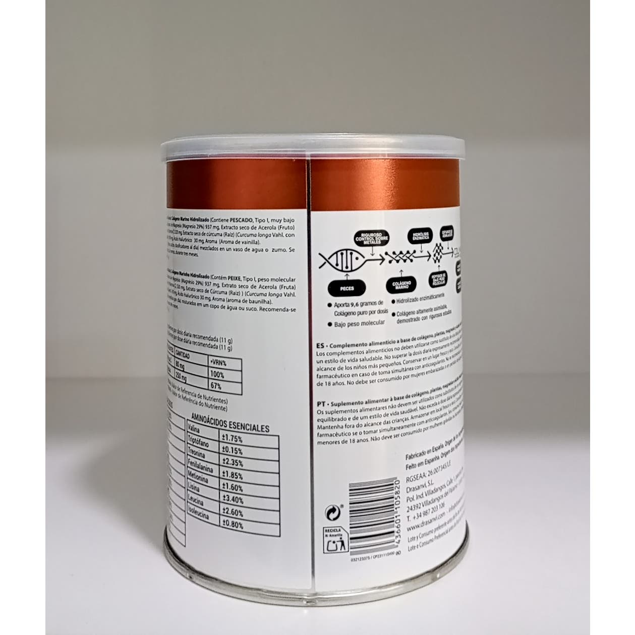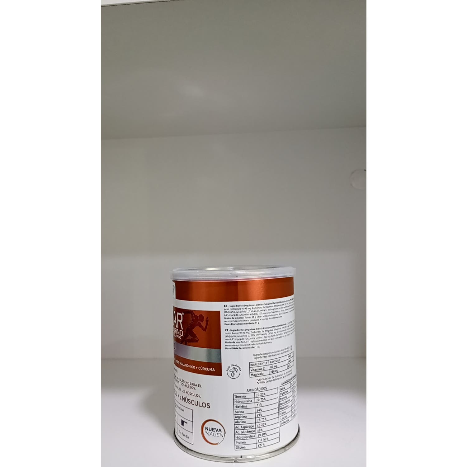 Colágeno Marino Hidrolizado, Carbonato De Magnesio, Extracto Seco De Cúrcuma, Vitamina C, Ácido Hialurónico, Aroma De Vainilla Y Sucralosa.
