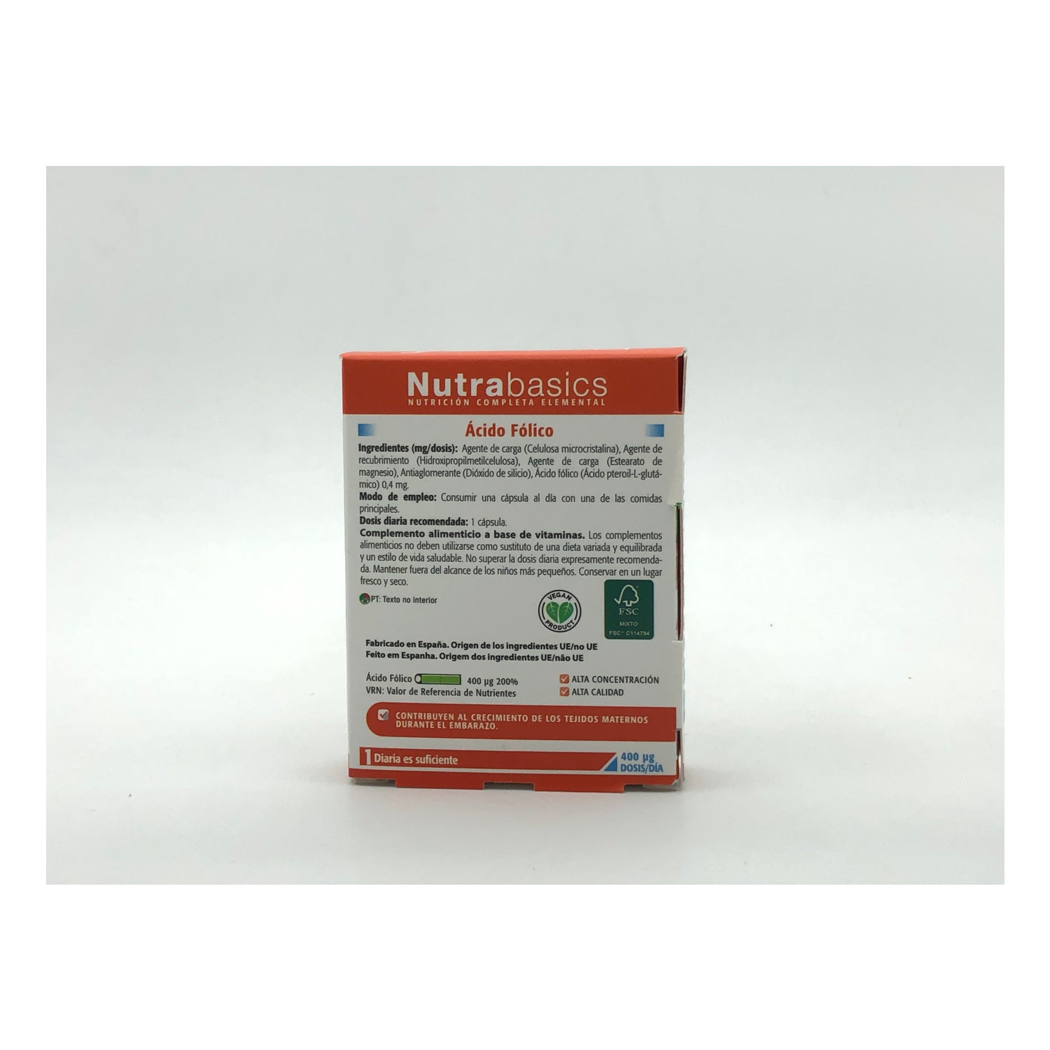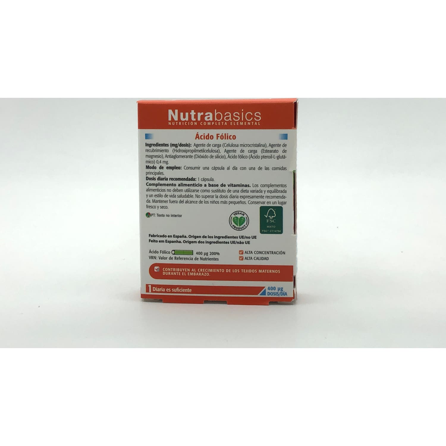 Las cápsulas de Drasanvi incorporan en su composición 400 µg de ácido fólico en forma de ácido pteroil-L-glutámico, aportando el 100% de la cantidad diaria recomendada por cápsula.