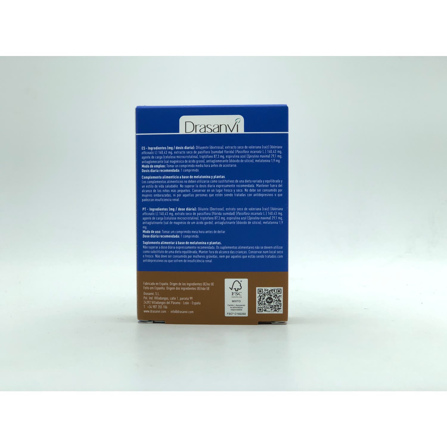 Complemento alimenticio en forma de comprimidos, elaborado a base de melatonina, triptófano, valeriana y pasiflora, que está indicado para ayudar a disminuir el tiempo para conciliar el sueño.