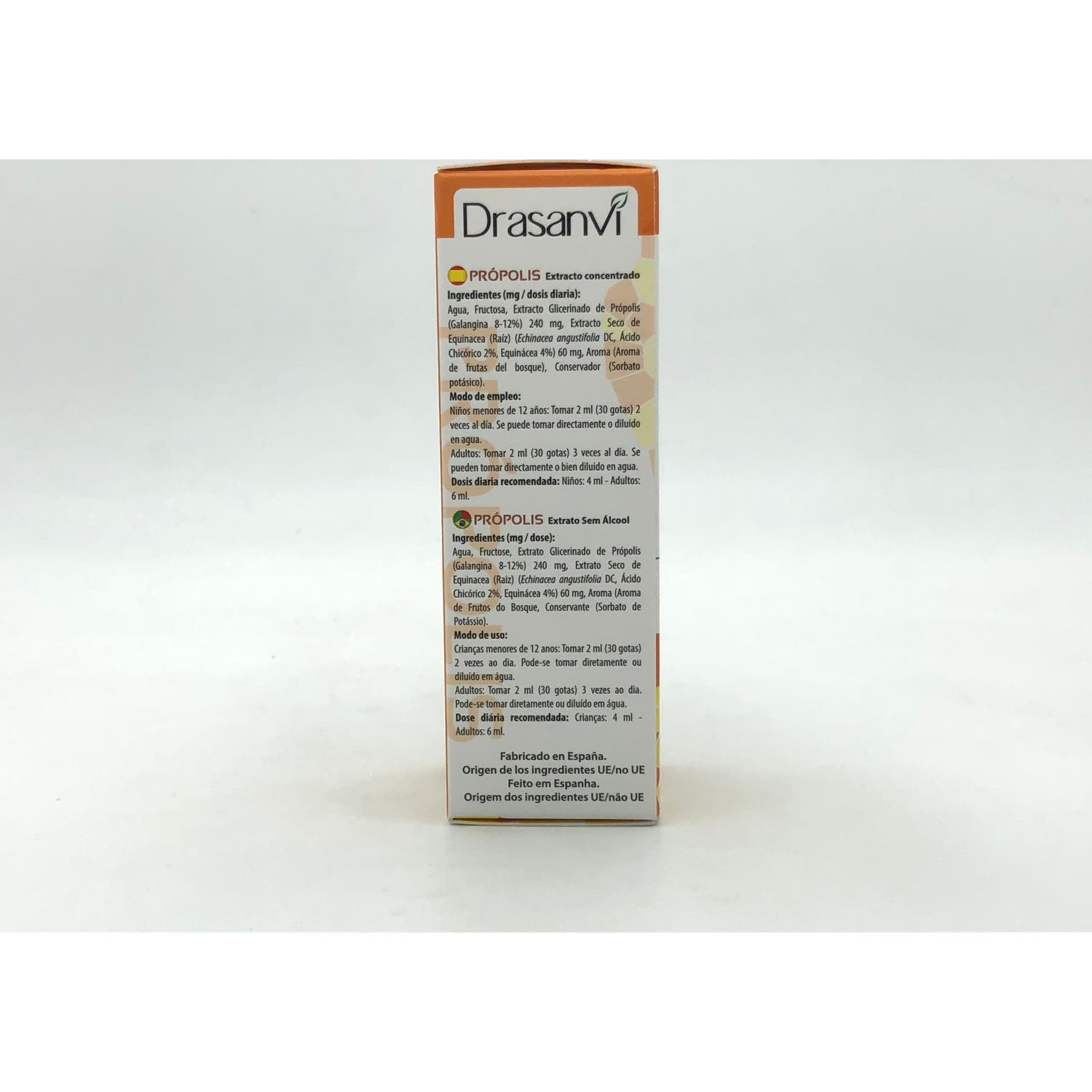 Drasanvi própolis extracto sin alcohol es un complemento alimenticio, formulado a base de própolis puro y equinácea, empleado para fortalecer tus defensas frente al daño provocado por agentes víricos. Posee un aroma a frutos del bosque, que le aporta un agradable y confortable sabor, para que puedas sentirse descansado en momentos en los que tus defensas bajan su actividad.