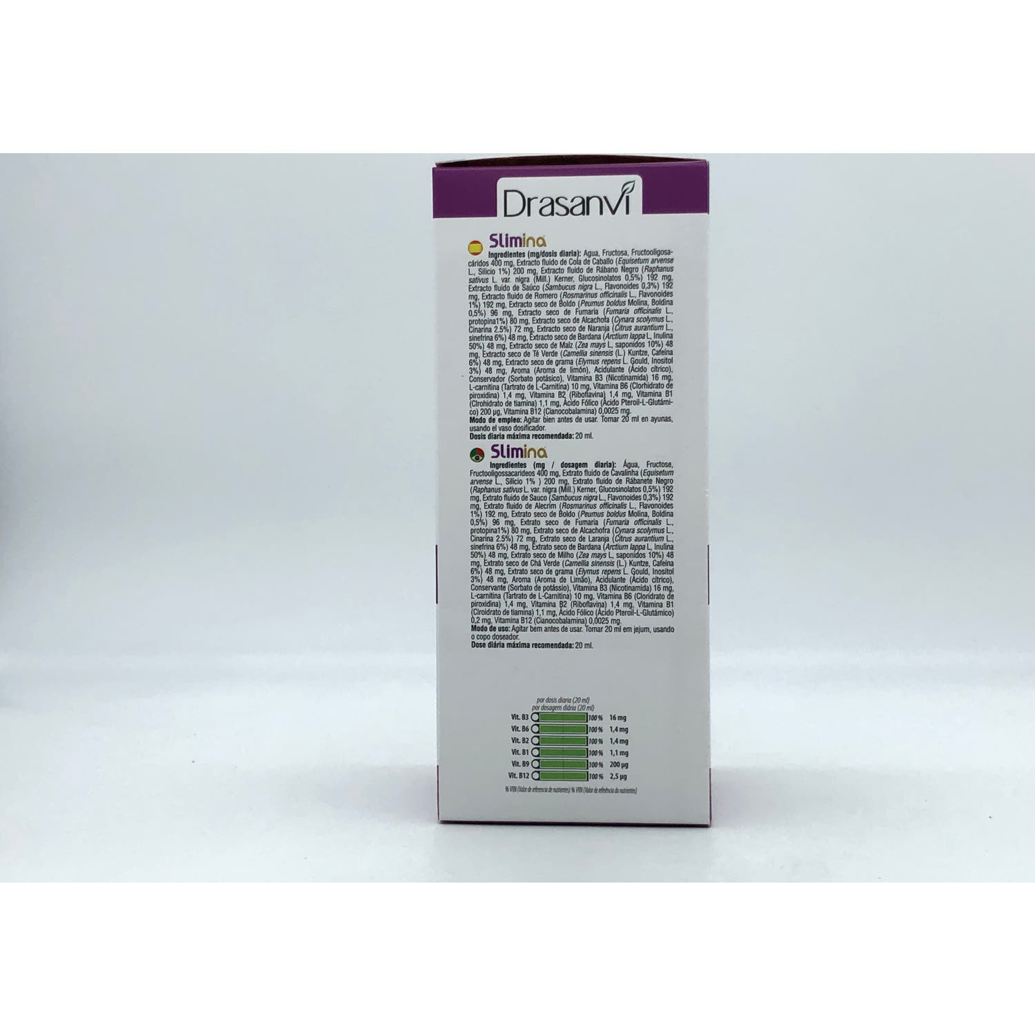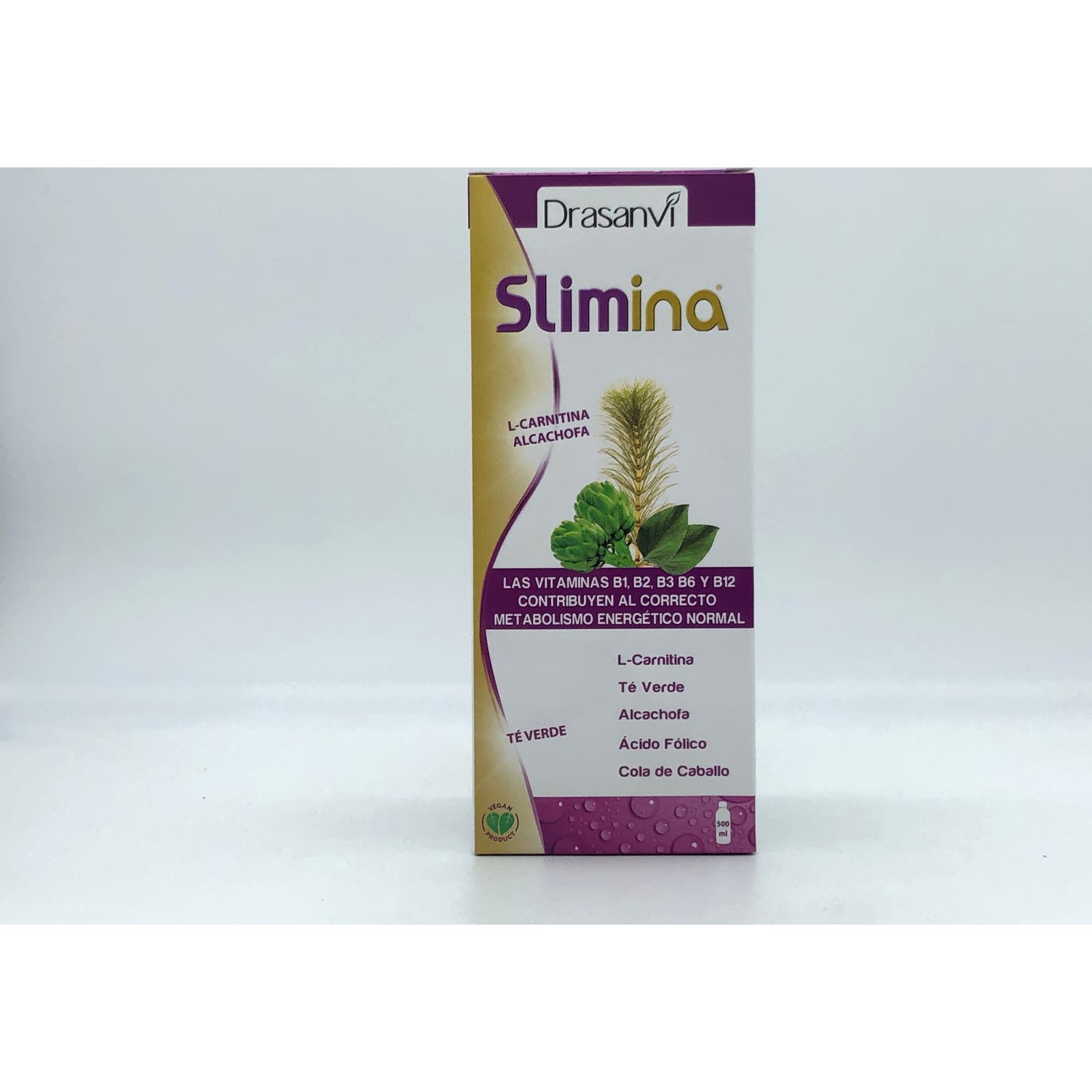 Drasanvi Slimina 500ml es un complemento alimenticio que contribuye en la pérdida de peso. Ayuda a eliminar las sustancias tóxicas y los líquidos sobrantes que se acumulan en el organismo, facilitando el buen funcionamiento del metabolismo de macronutrientes.